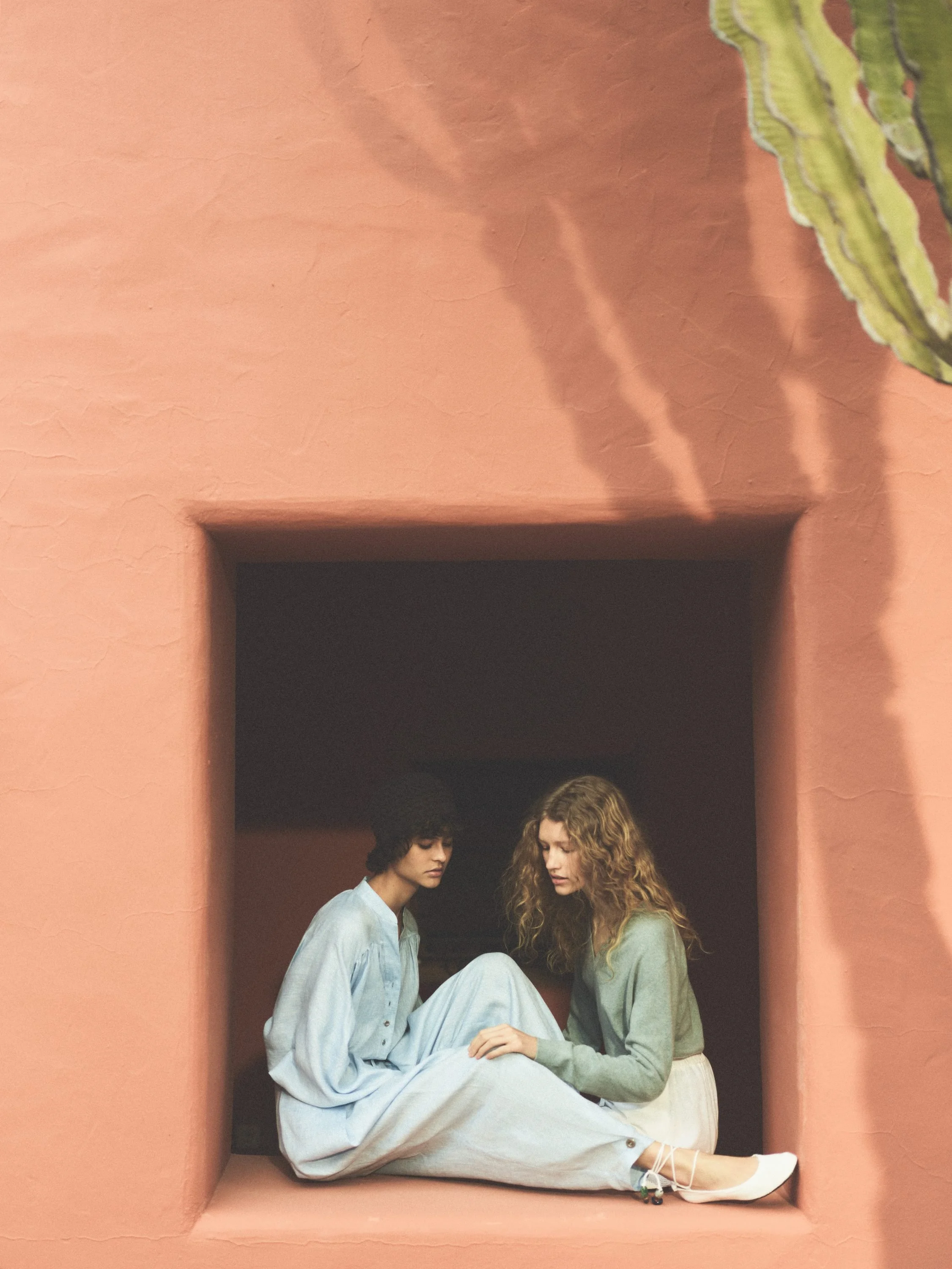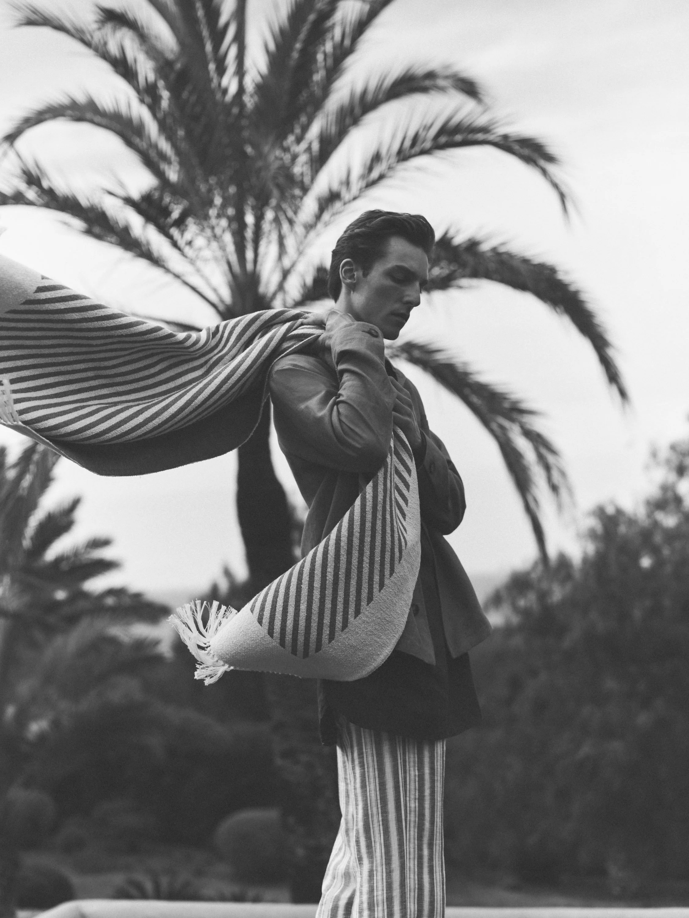 Linen, in crêpe or in Loro Piana’s exclusive Solaire fabric, is used abundantly for resort, as is silk georgette. Prints reflect ancient, global trade routes in and around the Mediterranean. Clients embrace the reality that a print might appear to be Moroccan-inspired . . . no, no it’s from India . . . no, no it feels more like today’s Marseilles.