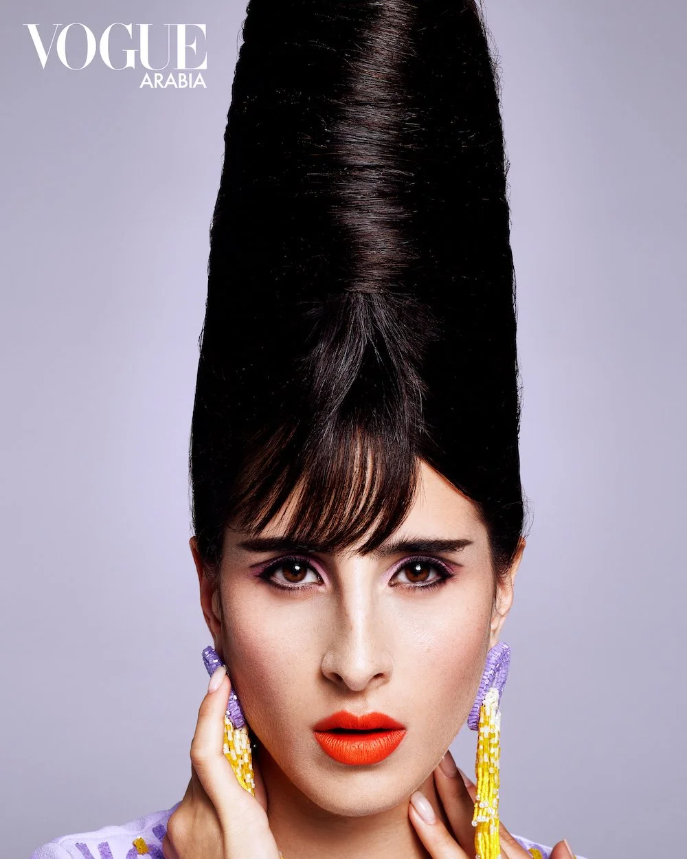 /We return to another set of interior images — different poses, same clothes — for Vogue Arabia's June 2023 Lavender Saudi Issue: 10 Covers, 10 Top Models, 10 Saudi Designers Covers.