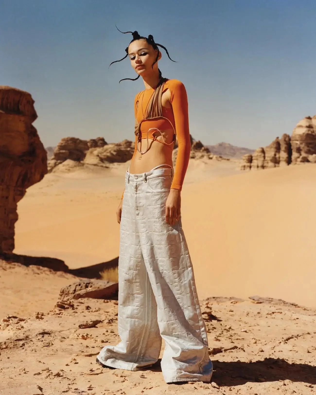 /Welcome to the awe-inspiring realm of model Binx Walton lensed by Eddie Wrey [IG] at Wadi Rum and Petra, two iconic historical landmarks in the heart of Jordan. AOC notes that some backdrop images are dated April, 2022 on Wrey’s IG and there’s no confirmation that the team actually travelled to the region. We don’t know.