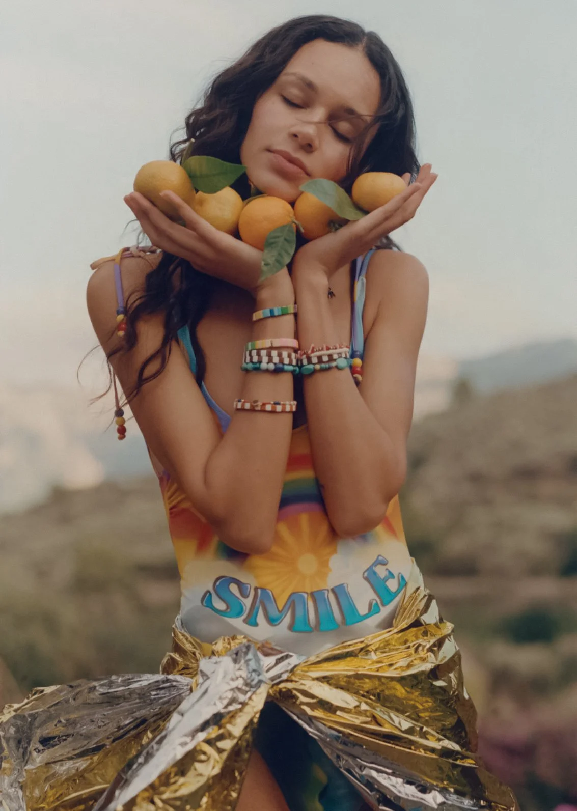 /Models Binx Walton, Lucho Jacob, Sage Lopez and Yoli Letica are fully-attuned to their ‘Out of this World’ landscape, styled by Clare Richardson in boho summer fashion. Photographer Dan Martensen [IG] is behind the lens, as Binx creates earth goddess magic across the land in British Vogue July 2023./ Hair by David Harborow; makeup by Lisa Houghton