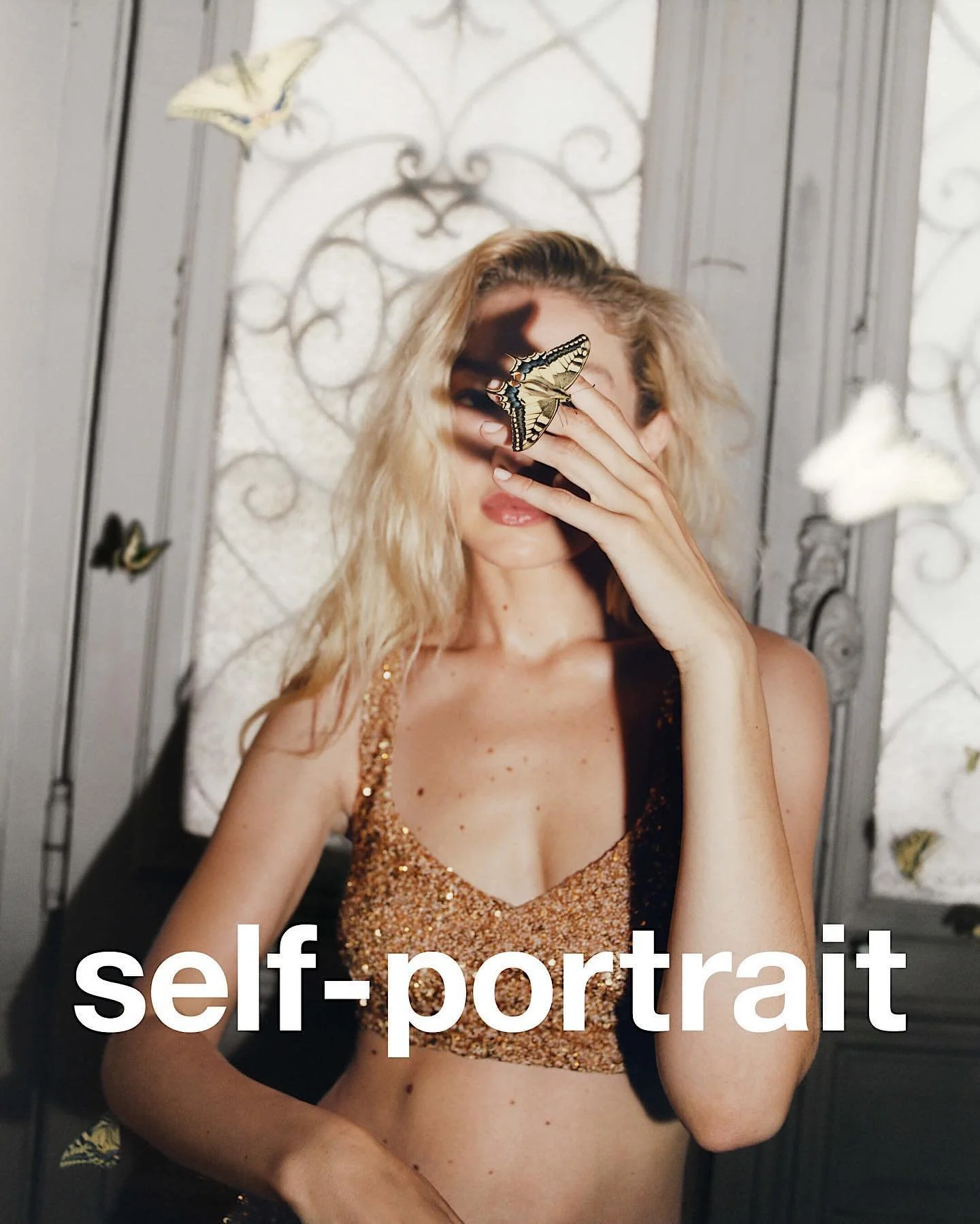 Glitter shimmers in abundance in the Self-Portrait campaign, both in the ready-to-wear pieces and the The Bow Bag, considered a signature Self-Portrait bag.