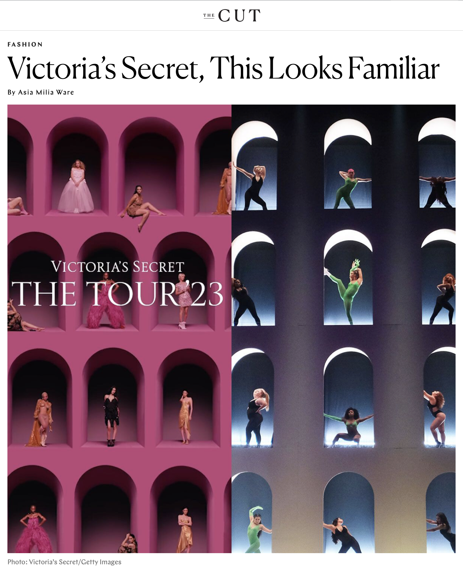 There are only so many ways that a brand can present a very large cast in a single still image. In addressing the similarities between Rihanna X Fenty and VS above, The Cut does acknowledge that reality and also that window staging is common in marketing.