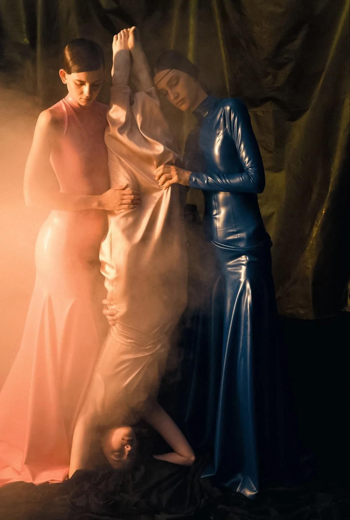 /Photographer Elina Kechicheva [IG] captures the world of women with a nighttime glimpse of modern-day evening fashion rituals in ‘Héritage’. Models Abigail Welch, Andrea Östlund and Sweia Hartmann are styled by Samuel François in a fall offering to the eveningwear goddesses for Numéro [IG] 240 September 2023./ Hair by Quentin Lafforgue; makeup Rubén Mármol