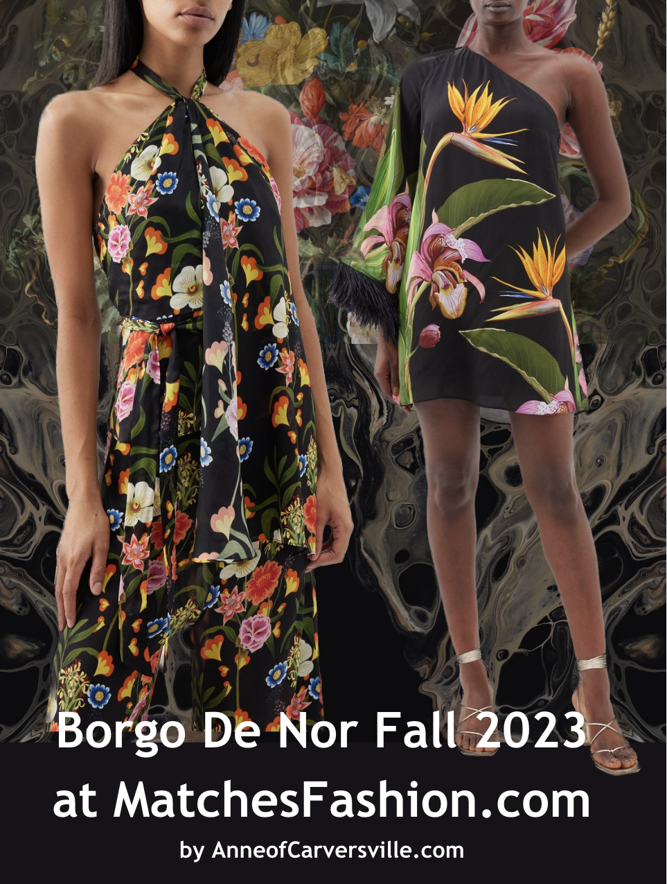 These artists all were heavily influenced by the Flemish painters who were radical in their day, as enlightened minds emerged out of the Dark Ages of Western Civilization. As we speak, these Flemish-inspired Bloomsbury flowers prints and patterns are all over fall 2023 luxury fashion pages. Borgo De Nor really caught my eye at Matches.