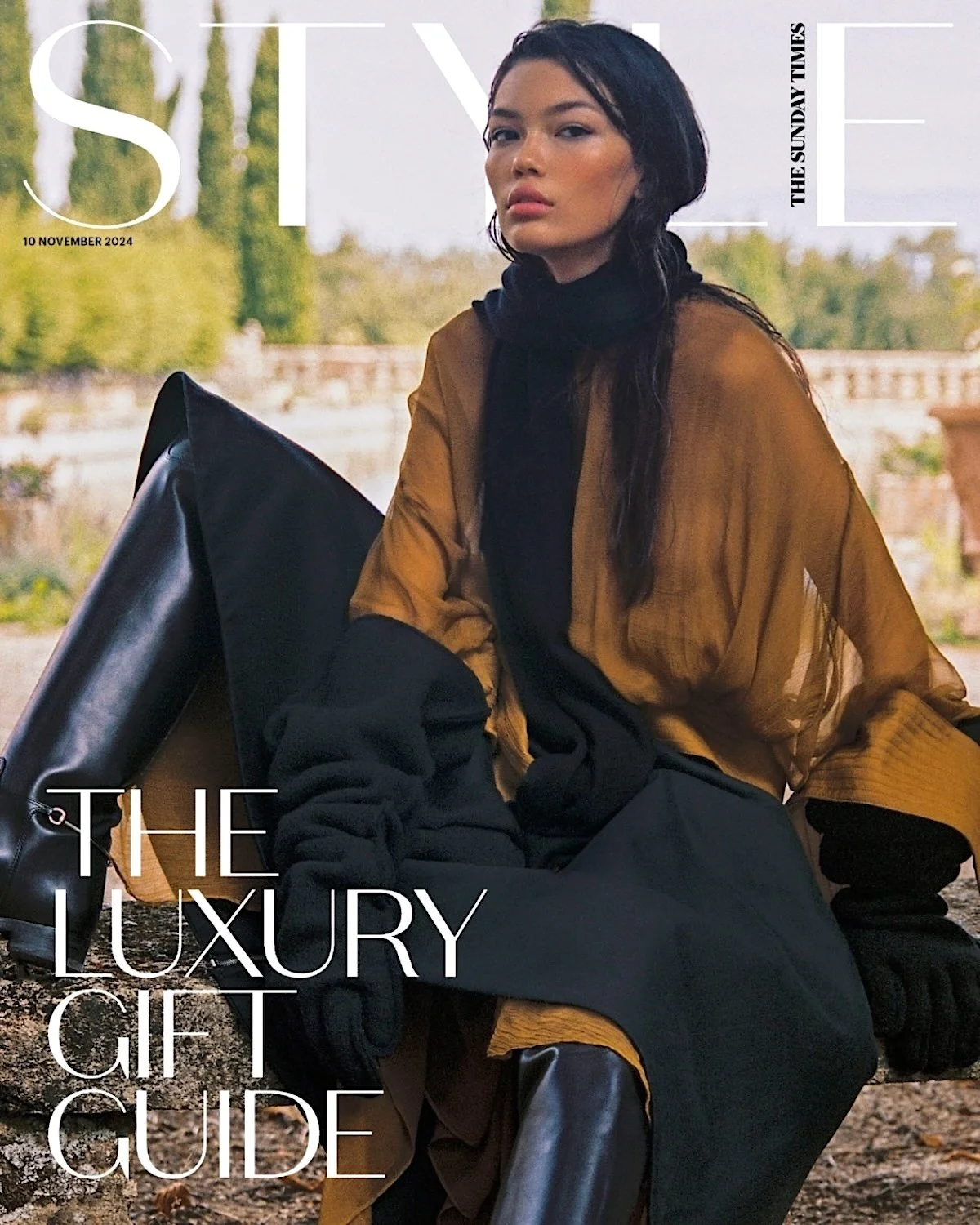 In her fashion story for The Sunday Times Style Magazine UK [IG] November 10, 2024, Strongarm is styled by Verity Parker in Bottega Veneta, Brunello Cucinelli, Burberry, Calcaterra, Chloé, Ferragamo, Holzweiler, Jacquemus, JW Anderson, Loewe, Margaret Howell, Marni, Prada, Tod’s and more . Photographer Akila Berjaoui [IG] is on location in France at Château d'Arnajon [IG]./ Hair by Alfie Sackett; makeup by Eny Whitehead