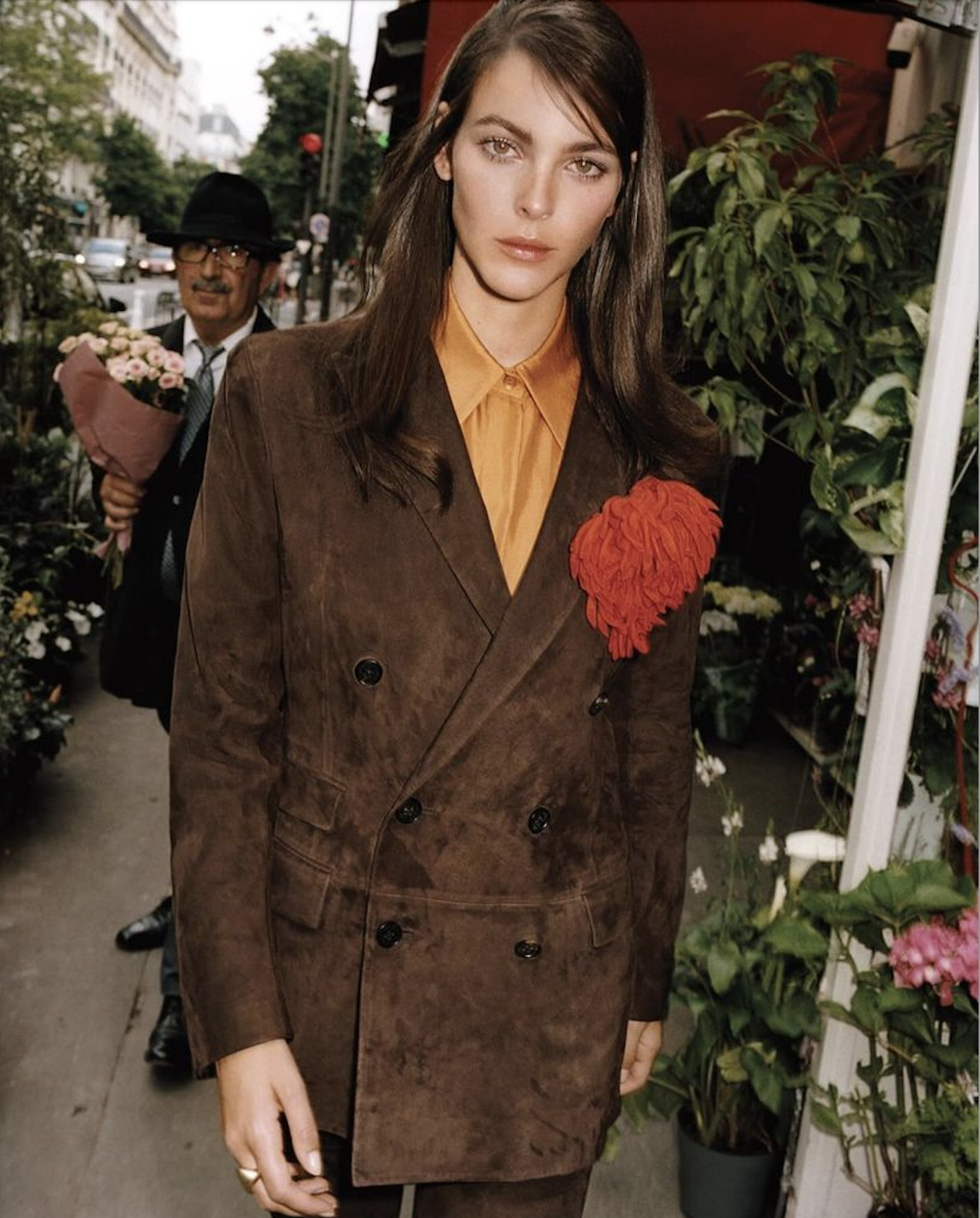 /British Vogue’s [IG] October 2024 issue channels ‘60s pop chanteuse Francoise Hardy in a fashion story ‘Joie de Vivre’. Top model Vittoria Ceretti channels Hardy’s signature looks styled by Jordan Bickham in images by Angelo Pennetta [IG]. / Hair by Ramona Eschbach; makeup by Marie Duhart