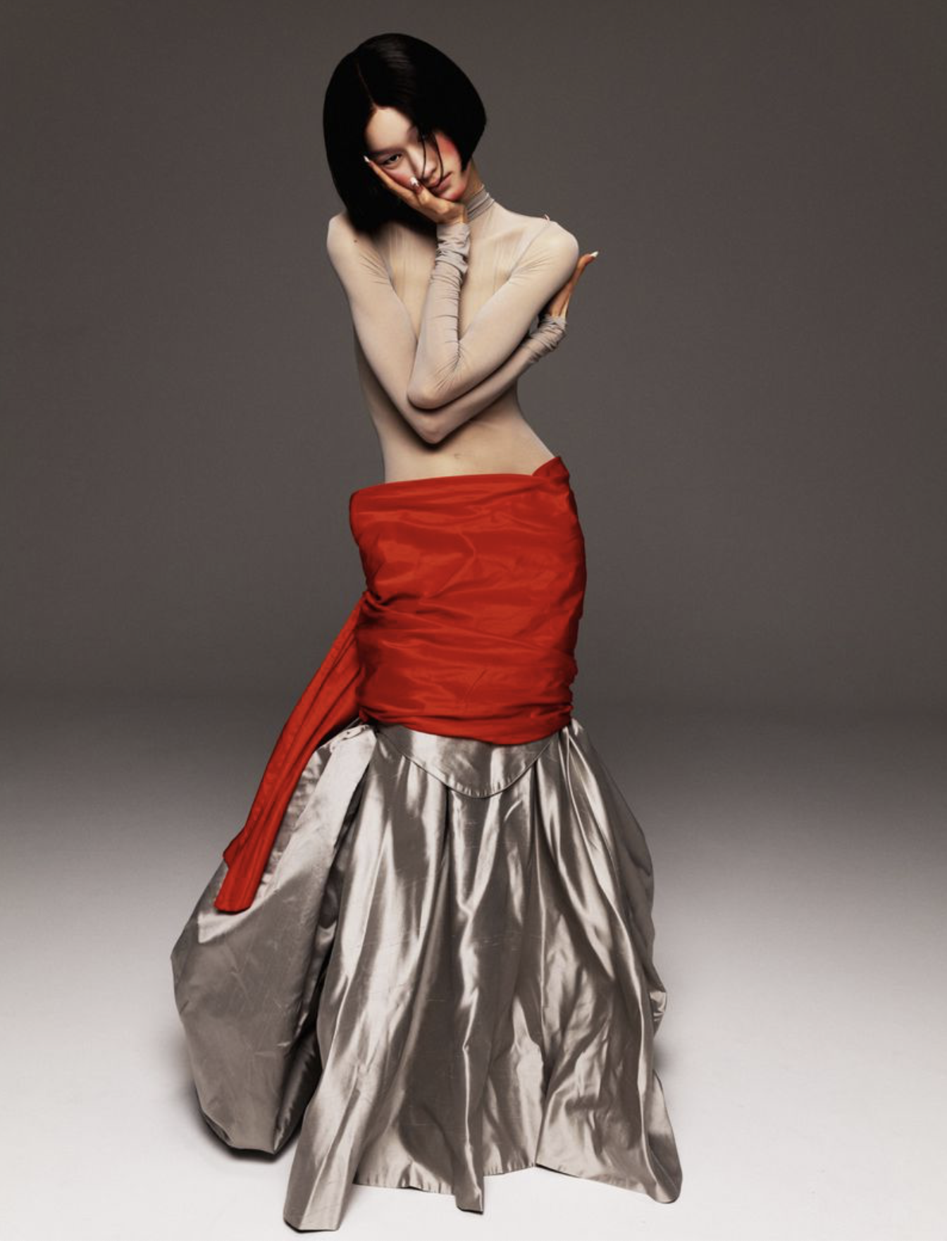 Five models are featured in the fashion production: América González, Chloe Oh, Mila van Eeten, Rejoice Chuol and Vika Evseeva. Austin Feng is in charge of styling, with Zhong Lin [AOC Archives] behind the lens. [Note, the fabulously talented Zhong Lin has four images on her IG and we also it in her archives.] Makeup by Clive Xiong; hair by Ryo Narushima