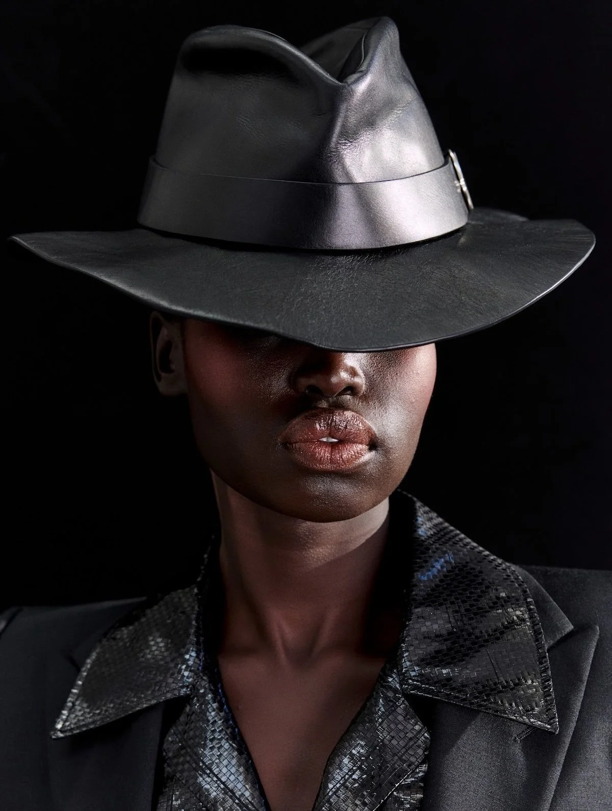 Photographer Ekua King [IG] captures Priscilla in the Balenciaga, Celine by Hedi Slimane, Chopova Lowena, Emporio Armani, Fendi, Ferragamo, Max Mara, Miu Miu, Prada Ralph Laurent Collection, Saint Laurent by Anthony Vaccarello, Simone Rocha and Stella McCartney boys-club dressing, investment statement for Elle UK [IG] December 2024/January 2025./ Hair by Lauraine Bailey; makeup by Sandra Cooke