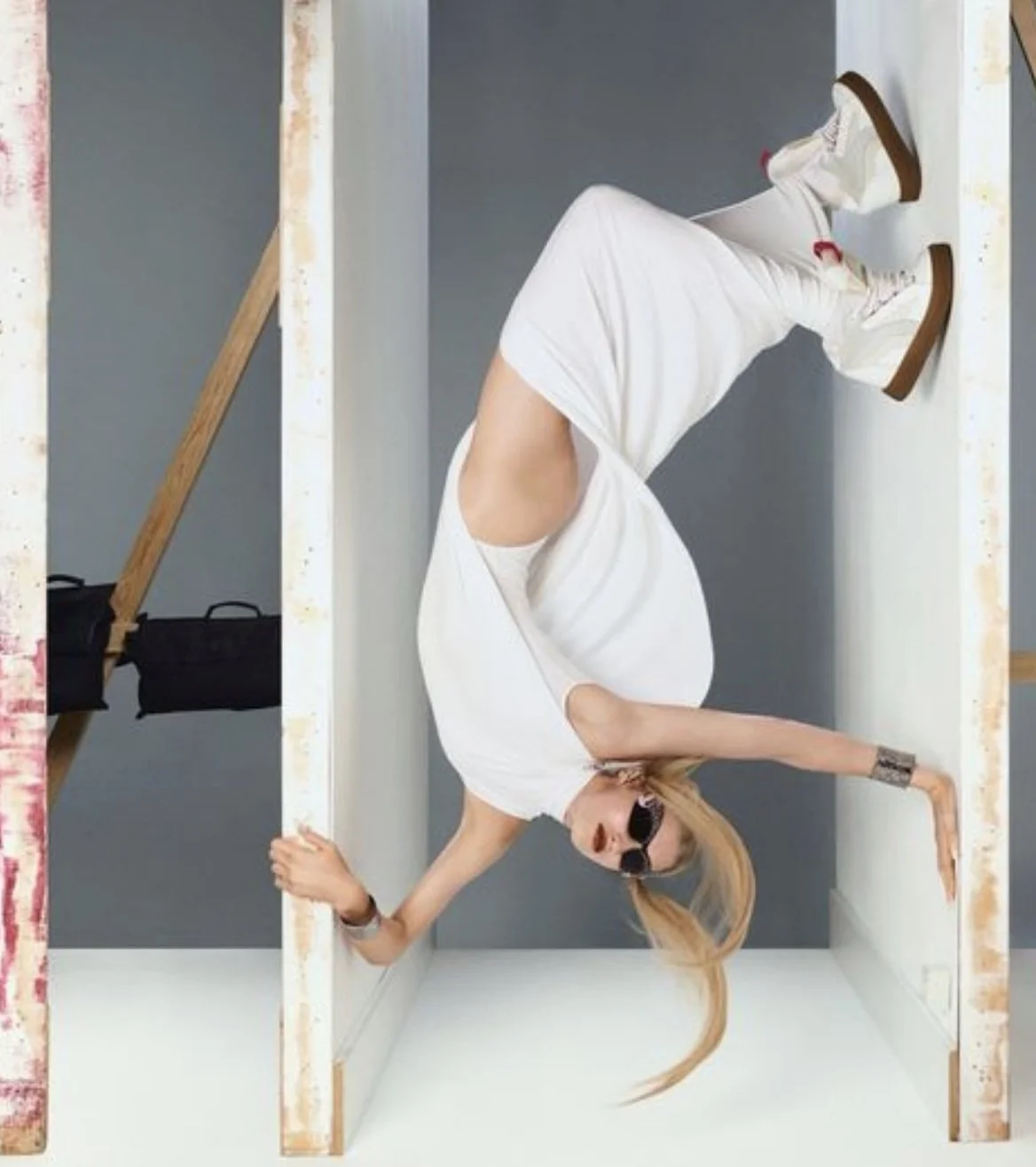 /The December 2024 issue of Dazed Magazine [IG] shares ‘Flip the Script’, an artful, graphic presentation fashion story lensed by Torso [IG]. Georgia Pendlebury styles the shoot with French model Apolline Rocco Fohrer. / Hair by Olivier Schawalder; makeup by Masae Ito; set design by Christian Feltham