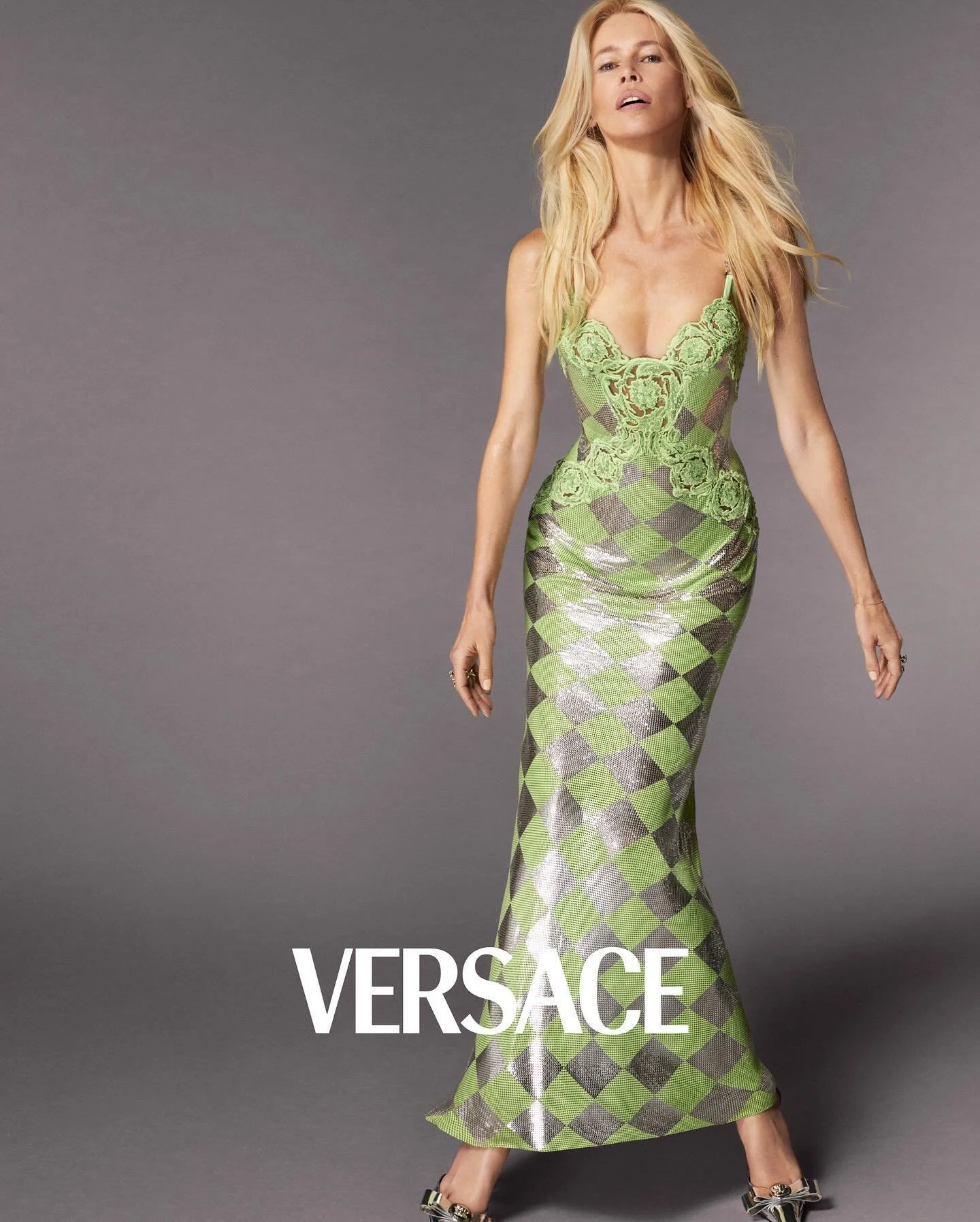 /Original supermodel and “legendary’ Gianni Versace muse, Claudia Schiffer takes the star position in the Versace spring/summer 2024 campaign.