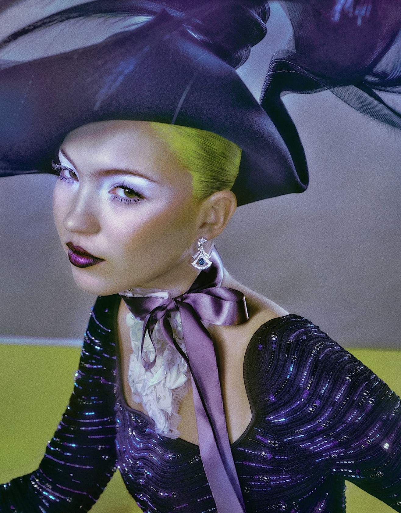 In her own words, Lila credits “the wonderful mind” of photographer Elizaveta Porodina [IG] for transforming her into “a magical harlequin” for the Vogue Spain cover story. Victoria Sekrier styles the fashion shoot using Alexander McQueen vintage; Dolce & Gabbana, Giorgio Armani, Louis Vuitton, Rabanne, Stella McCartney, Sportmax, The Attico, Valentino and more. / Makeup by Isamaya Ffrench; hair by Claire Moore