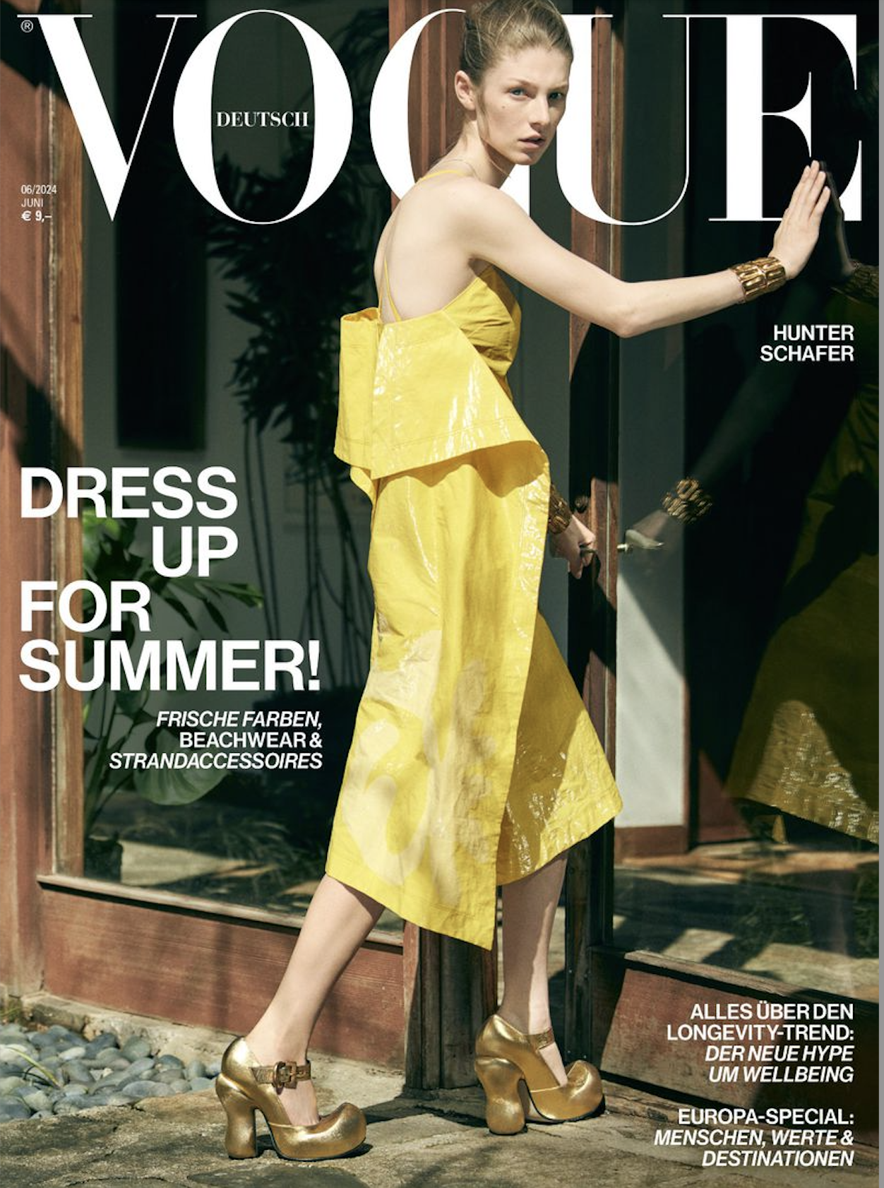 /The June 2024 issues of Vogue Italia and Vogue Germany share a fashion story ‘At Home’ starring actor and activist Hunter Schafer.