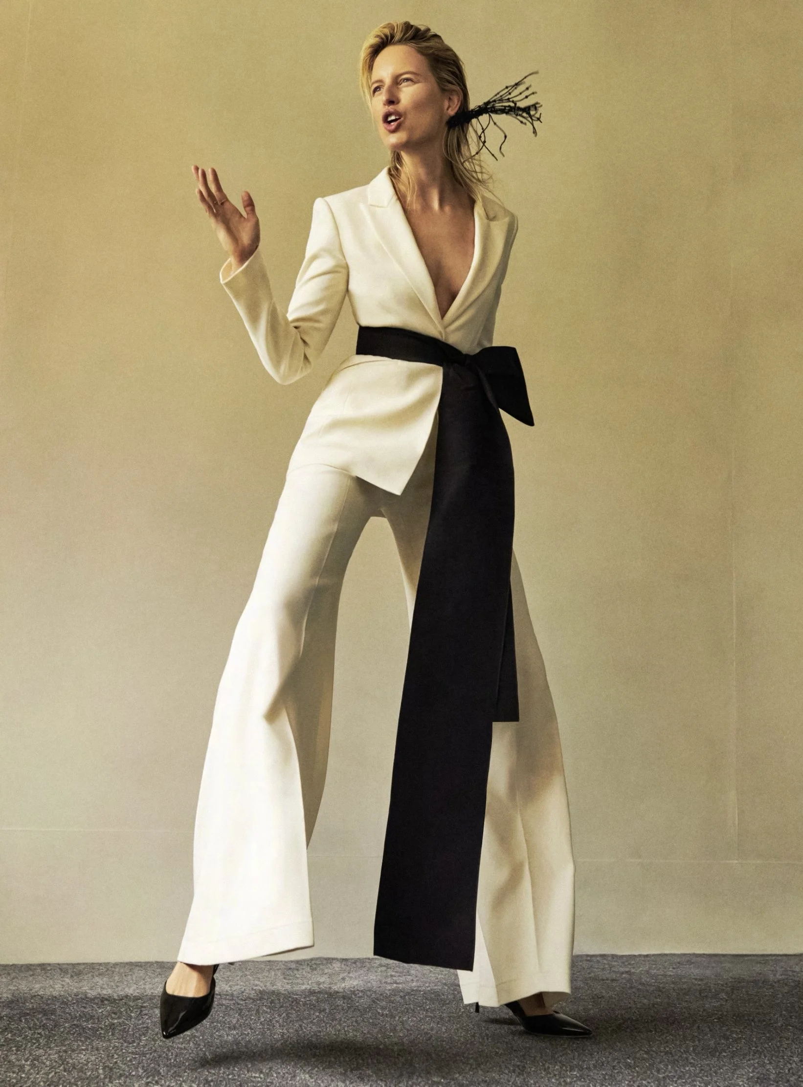 Top model Karolina Kurkova covers the September 2024 issue of ELLE Czech Republic [IG]. The supermodel is styled by Maria Kohutik in ‘Office Affair’, a fashion story lensed by Branislav Simoncik [IG]./ Hair by Mirka Mysicka; makeup by Hristina Georgievska