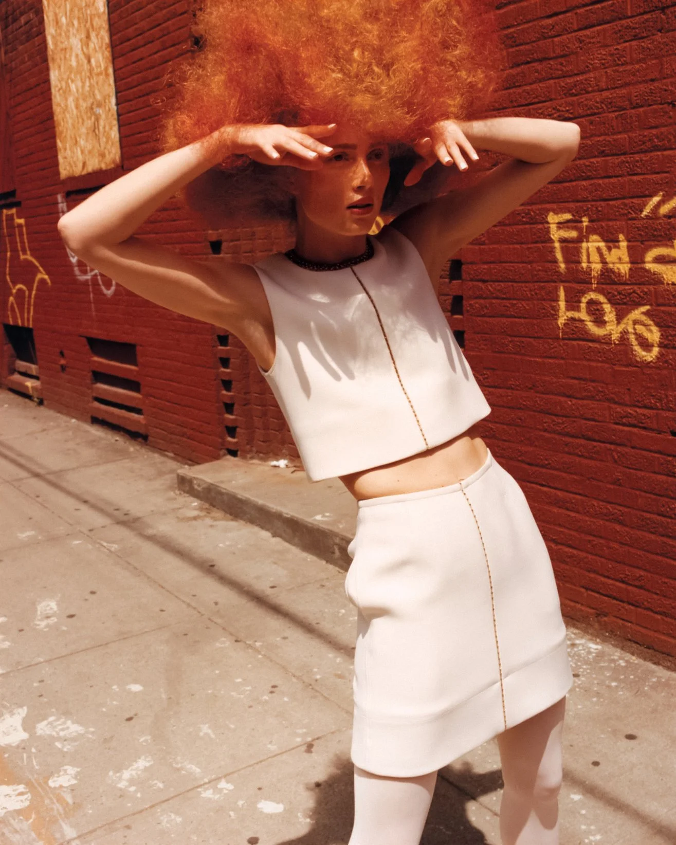 /Top model Rianne van Rompaey is styled by Grace Coddington in ‘Urban Renewal’, a fiery, ladylike fashion story shot in New York City for W Magazine’s [IG] Fall Fashion 2024 issue, Volume 4. Jamie Hawkesworth [IG] is behind the lens with creative direction by Charles Levai and Kevin Tekinel. / Hair by Julien d’Ys; makeup by Francelle Daly