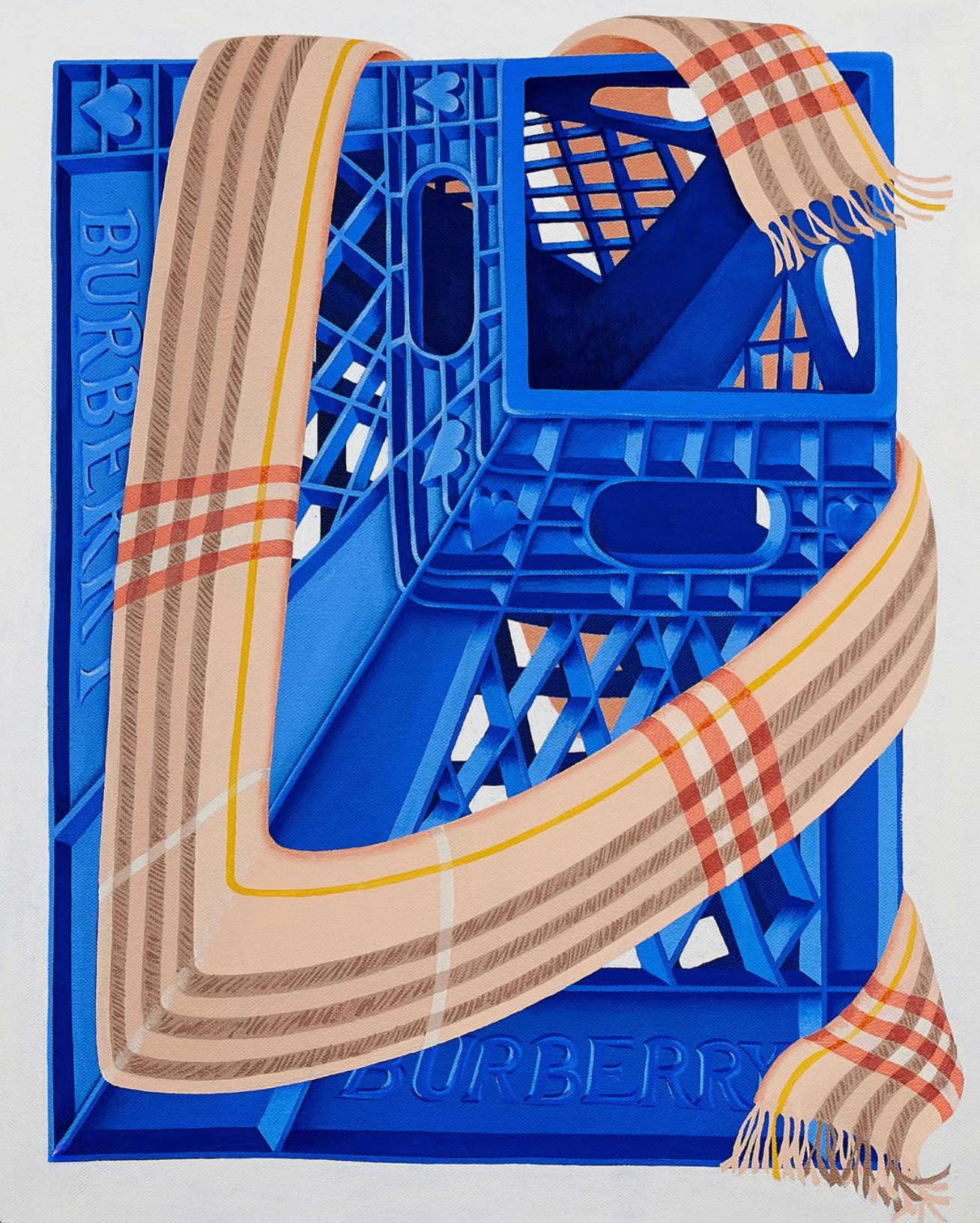 /Burberry [IG] is celebrating Valentine’s Day 2025 with a series of paintings by Brooklyn-based artist Jack Kenna [IG]. The modern-perspective artist creates unconventional pairings of familiar objects in a bold, abstract style.