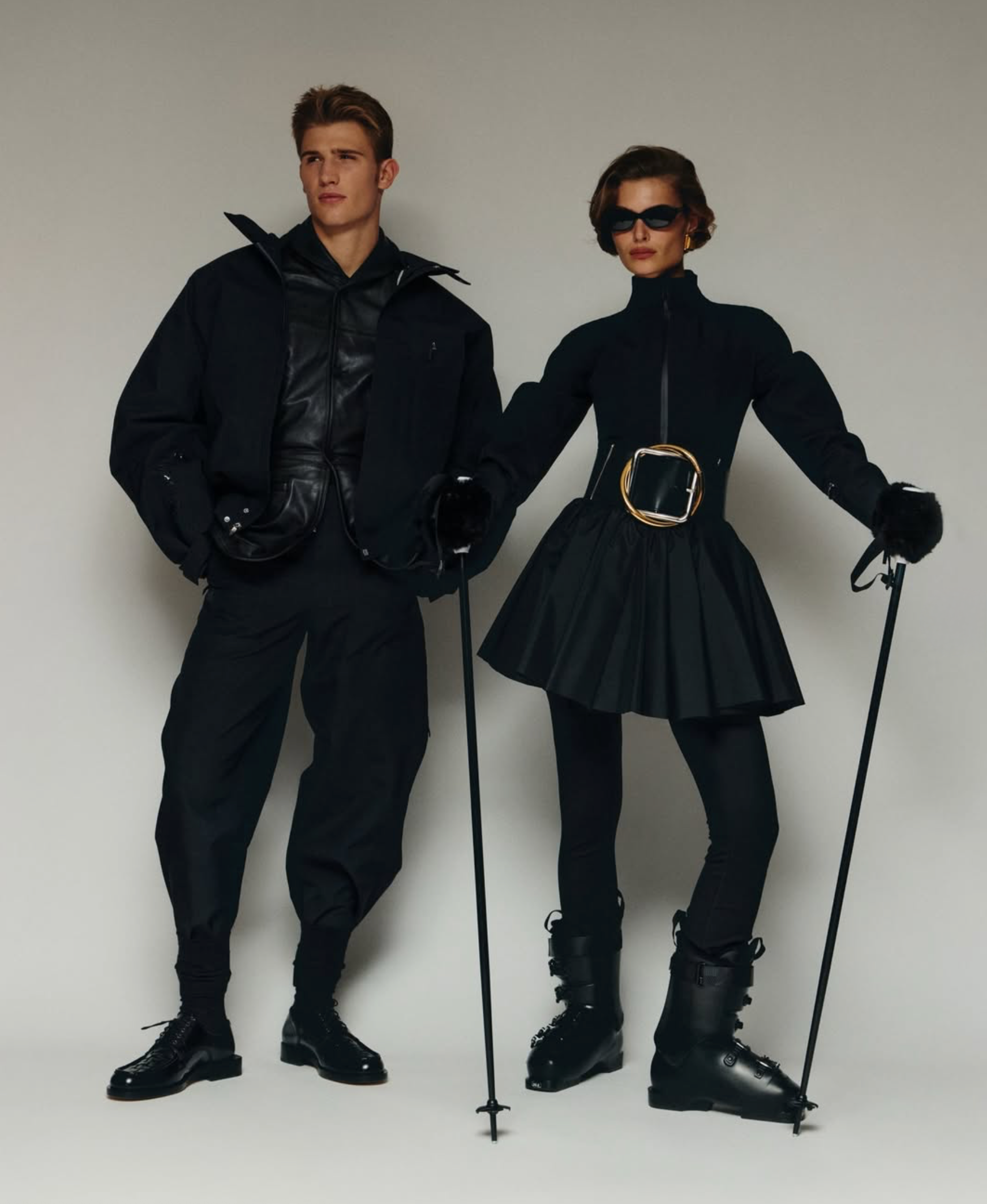 /Designer Simon Porte Jacquemus delights fans with the Nike x Jacquemus Après Ski Collection [IG], modeled here by Bibi Breslin and Joe Baker, with styling by Katie Burnett./ Hair by Louis Ghewy; makeup by Eva Louis