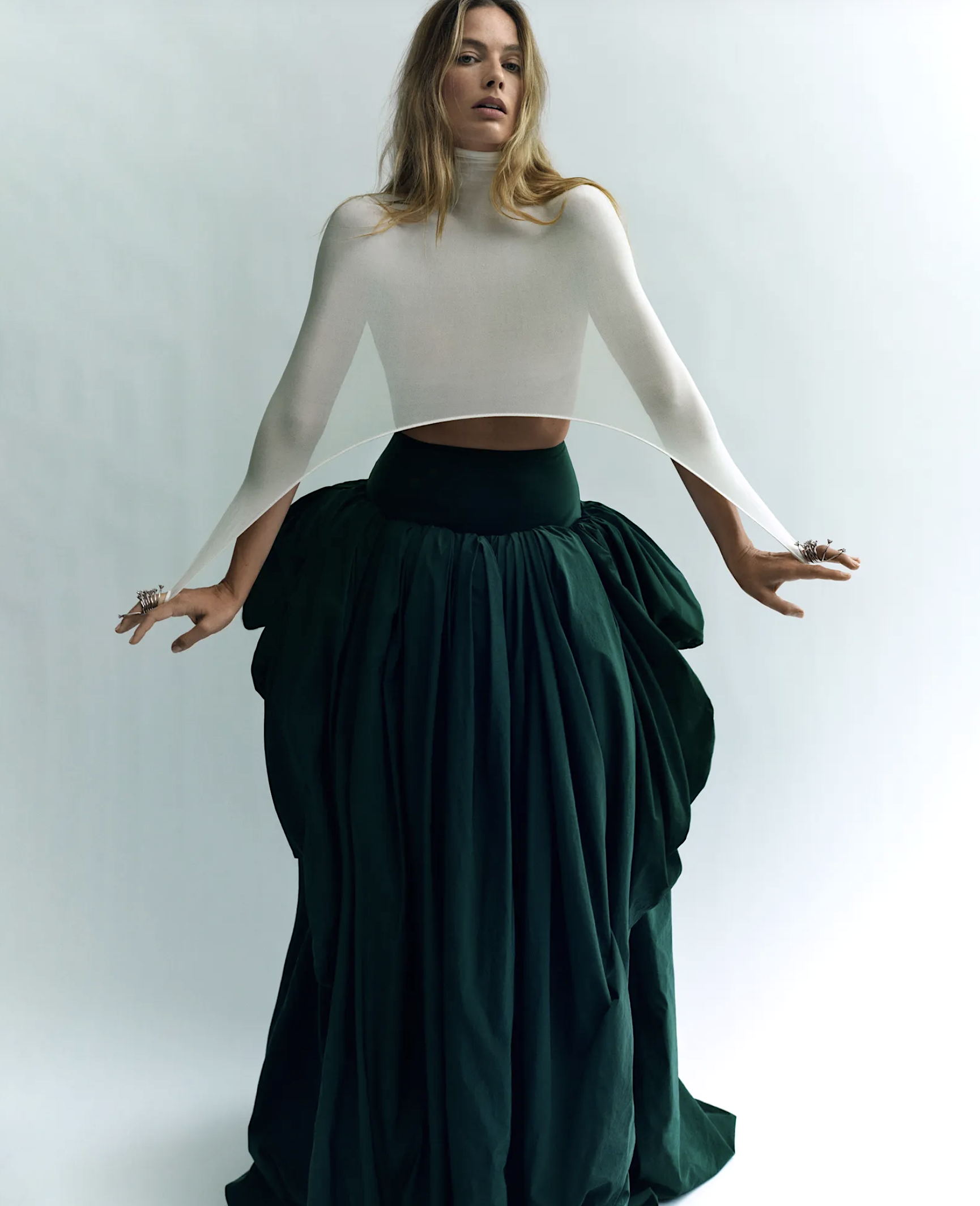 This interview is about Margot Robbie, not Nicole Kidman, but I can’t help drawing a comparison, reading the words. The Chanel ambassador Robbie Chanel on the cover, with a wide range of luxury fashion styled by Robbie Spencer: Alaïa, Andreas Kronthaler for Vivienne Westwood, Bottega Veneta, Chanel, Dilaria Findikoglu, Dries van Noten, Maison Margiela, McQueen, Mugler, Ralph Lauren, Schiaparelli, Simone Rocha, Vaquera and more.