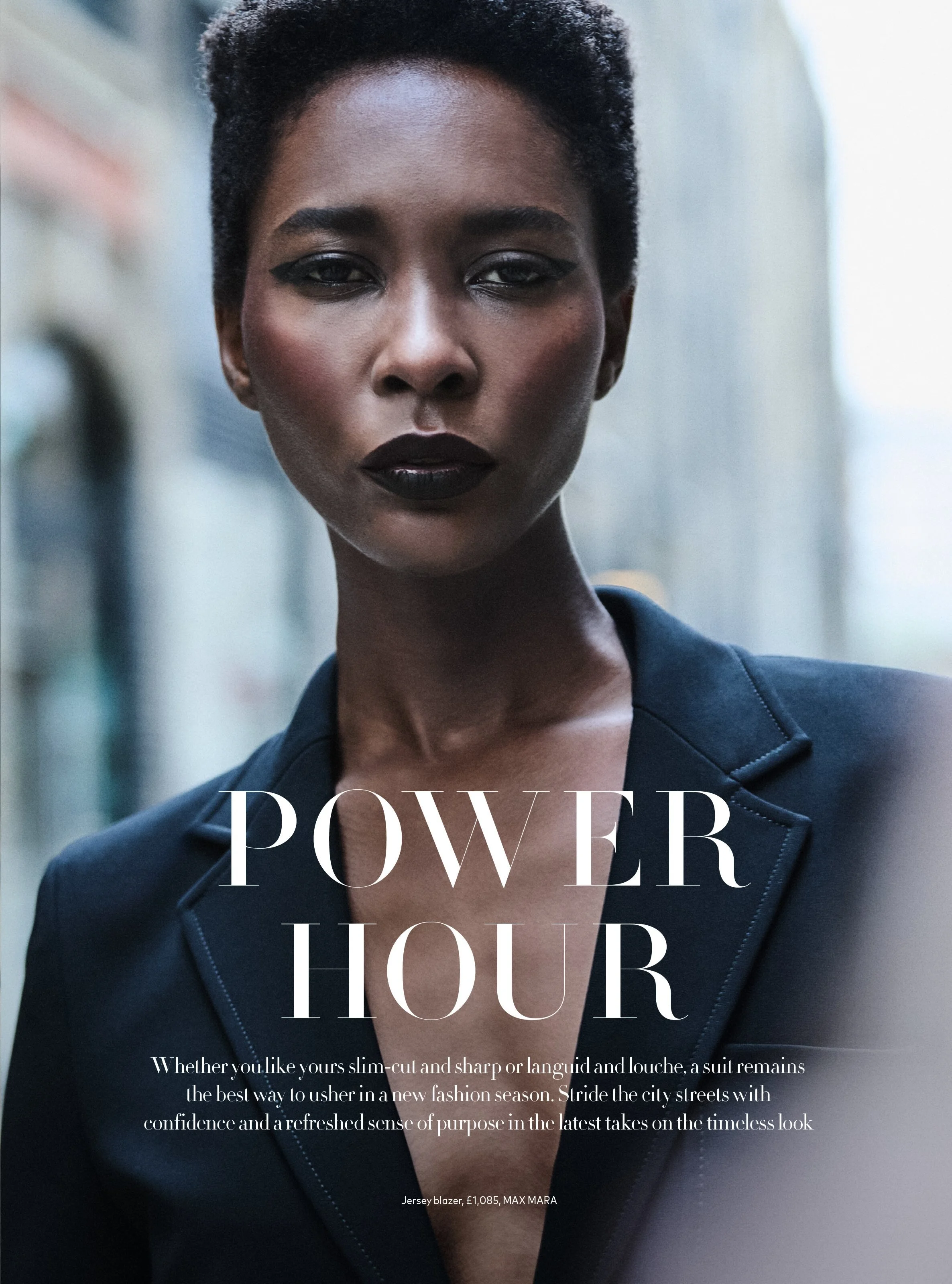 Mahany Pery Suits Up in 'Power Hour' Lensed by Boo George in Bazaar UK March 2025