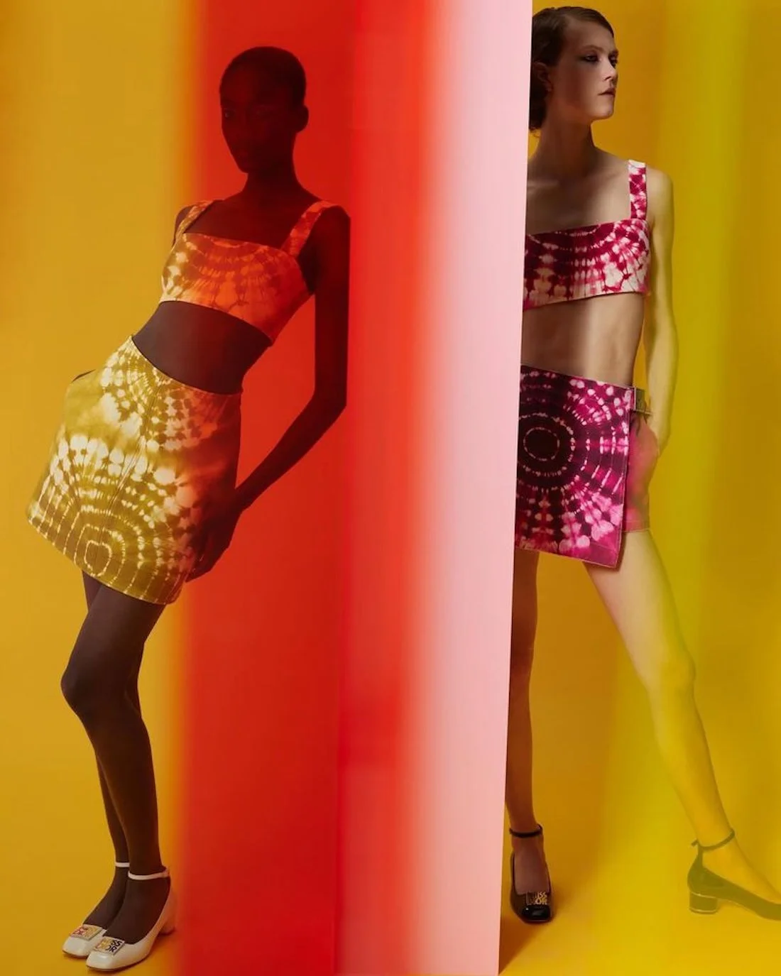 /The ‘Miss Dior’ range from Dior Cruise [IG] 2025 radiated youthful exuberance in the pages of Dior Magazine No.48, inspired by the Swinging Sixties. Photographer Viviane Sassen [IG] captured models Julie Hoomans and Sheila Bawar styled by Alexandra Carl in a psychedelic set designed by Ibby Njoya./ Hair by Christian Eberhard; makeup by Min Kim