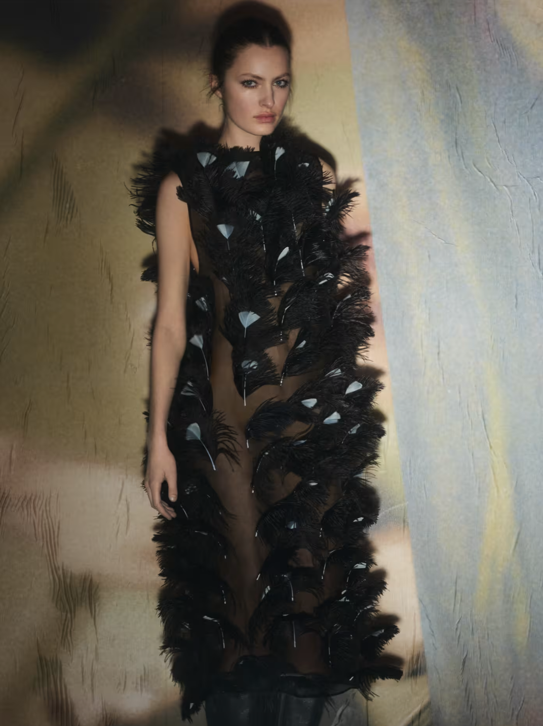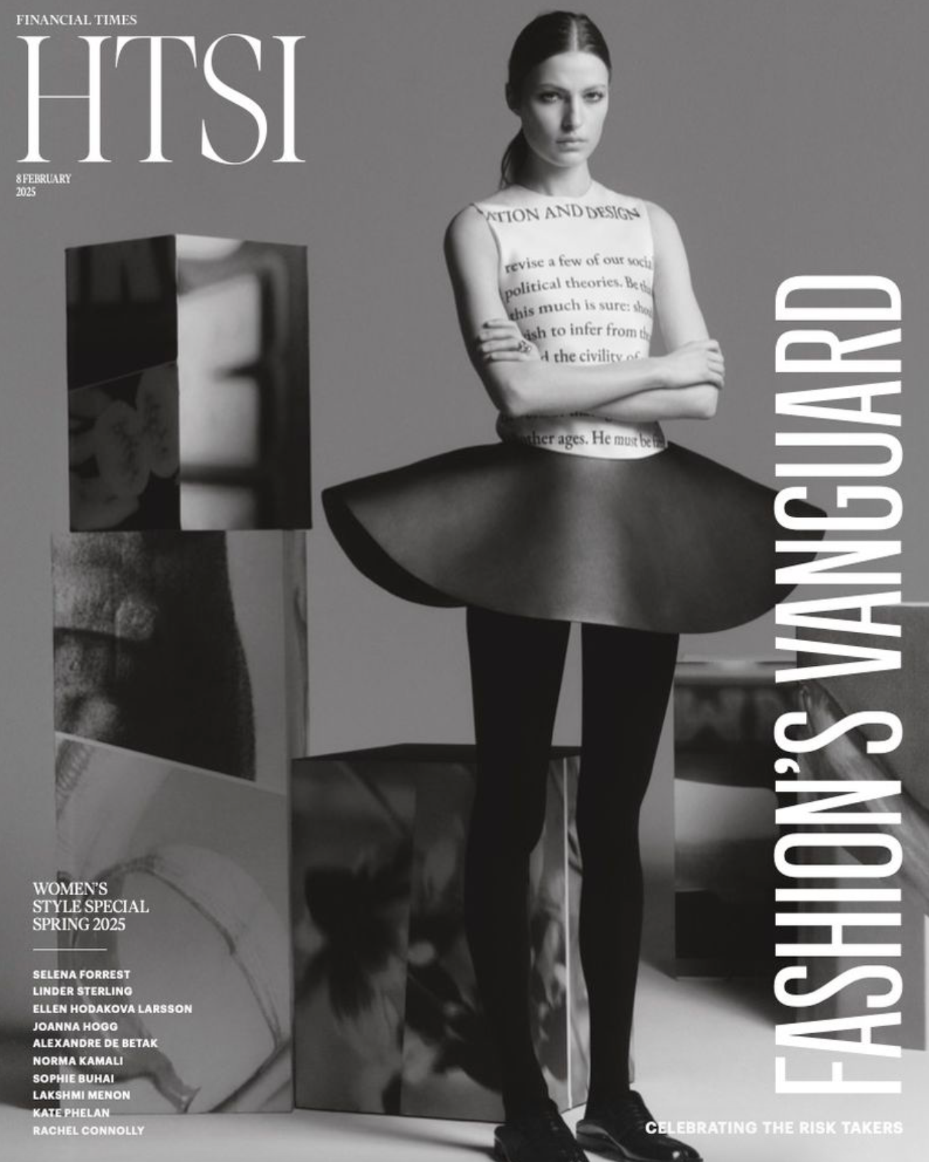 /Model Felice Noordhoff covers How to Spend It’s [HTSI] Spring/Summer 2025 Fashion Issue, styled here by Isabelle Kountoure. The message is clear: ‘Make a dramatic entrance in these bold shapes’, wearing Alaïa, Bottega Veneta, Dior, Dolce & Gabbana, Duran Lantink, JW Anderson, Loewe, Louis Vuitton, Maison Margiela, Phoebe Philo, Prada, Rokh, Victoria Beckham