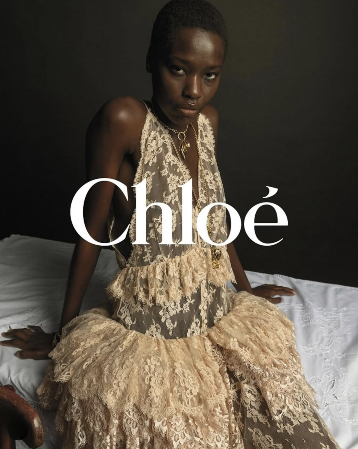 Besides Libby Taverner, models include Ava Shipp, Awar Odhiang, Binx Walton, Eniko Mihalik, Jacqui Hooper, Maelle Swaelens, Meghan Collison and Zhao Ziqi. Elodie David Touboul styled the Chloé Portraits photoshoot with hair by Gary Gill and makeup by Karin Westerlund.