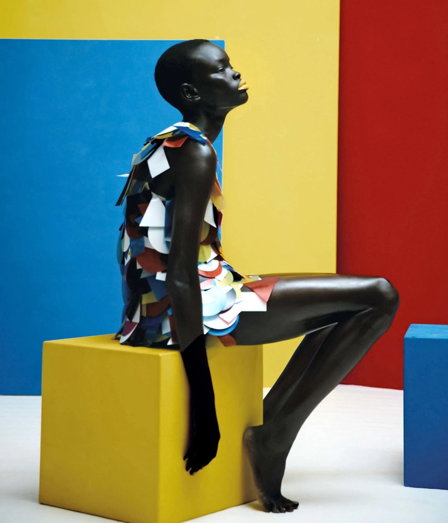 /Models Amar Akway, Nyajuok Gatdet, and Athiec Geng are styled by Imruh Asha in ‘Full Circle’, a modern-art fashion story lensed by Carlijn Jacobs [IG]. Brands include Balenciaga, Dior, Duran Lantink, Eres, Ferragamo, Issey Miyake, Maison Aläia, Missoni, Prada, Stella McCartney and more./ Hair by Laurent Philippon; makeup by Sam Visser
