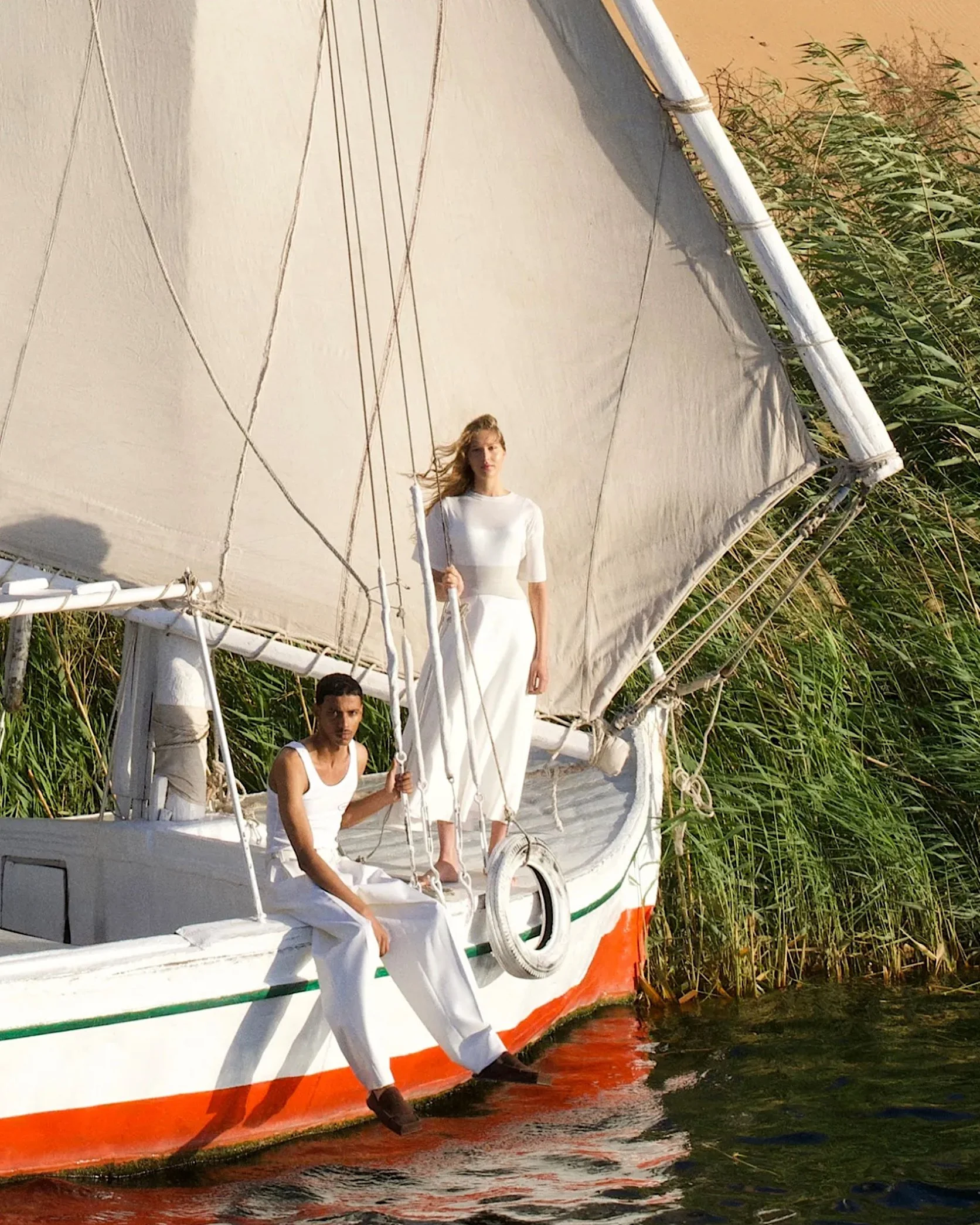 /Jacquemus shares its ‘La Croisière’ 2025 Campaign, lensed in Egypt as a 24-hour journey from Cairo to Aswan by Cairo-born photographer Mohamed Sherif [IG]. Models Angelina Kendall and Mohamed Hassan are styled by Omaima Salem, drifting along the banks of the Nile in images that highlight the beauty and treasures of Egypt.