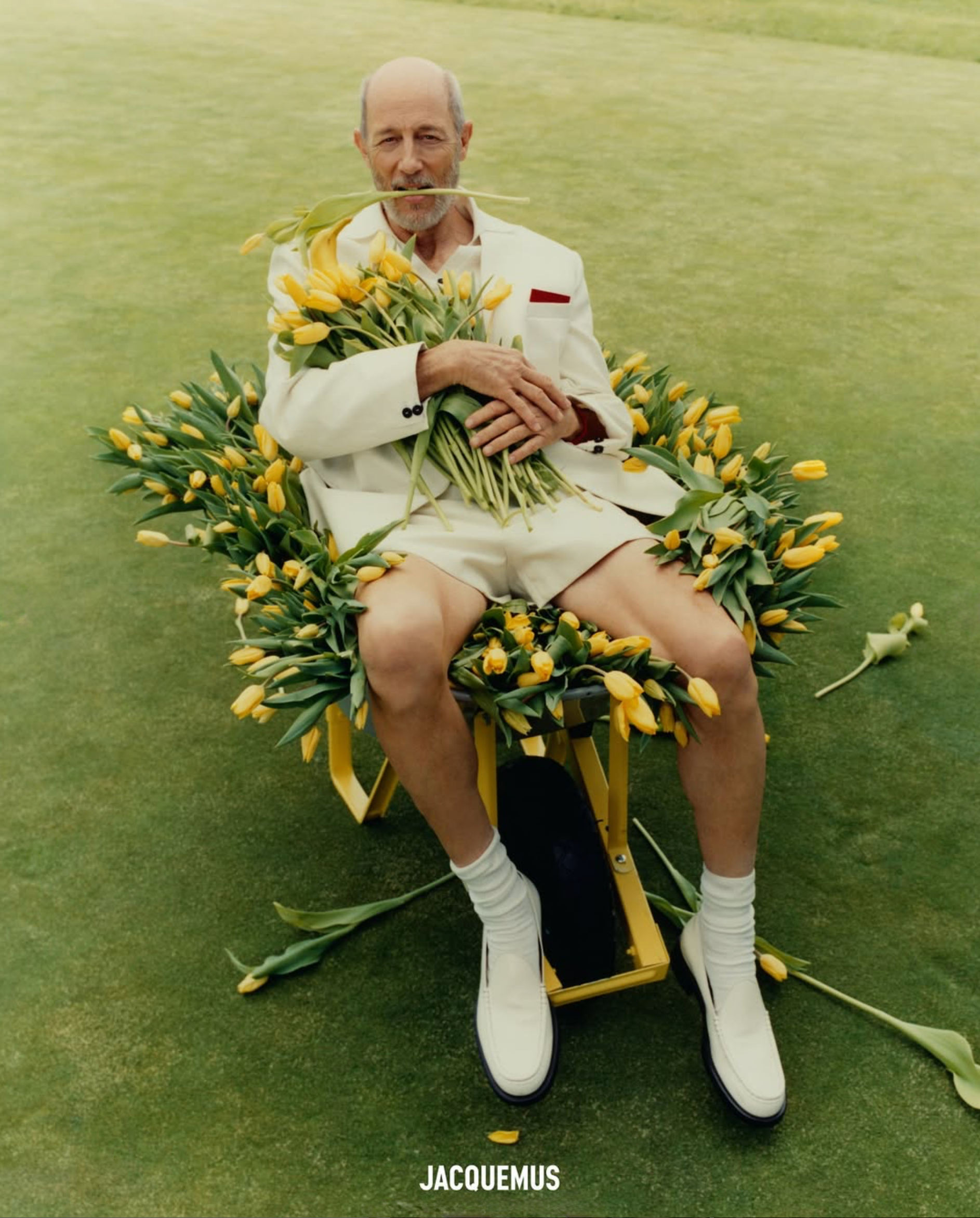 /American actor Jon Gries, presently playing the role of Greg on ‘The White Lotus’, has gone bananas in the new Jacquemus [IG] campaign, inspired by the color yellow. Cheekily titled ‘GOING BANANAS FOR JON’, Jacquemus is being subversive, but in the style of the kid who eats half a bowl of raw cookie dough. Minutes before he’s in obvious physical agony with a massive stomach ache, he’s insisting on his innocence when mom opens the refrigerator door.