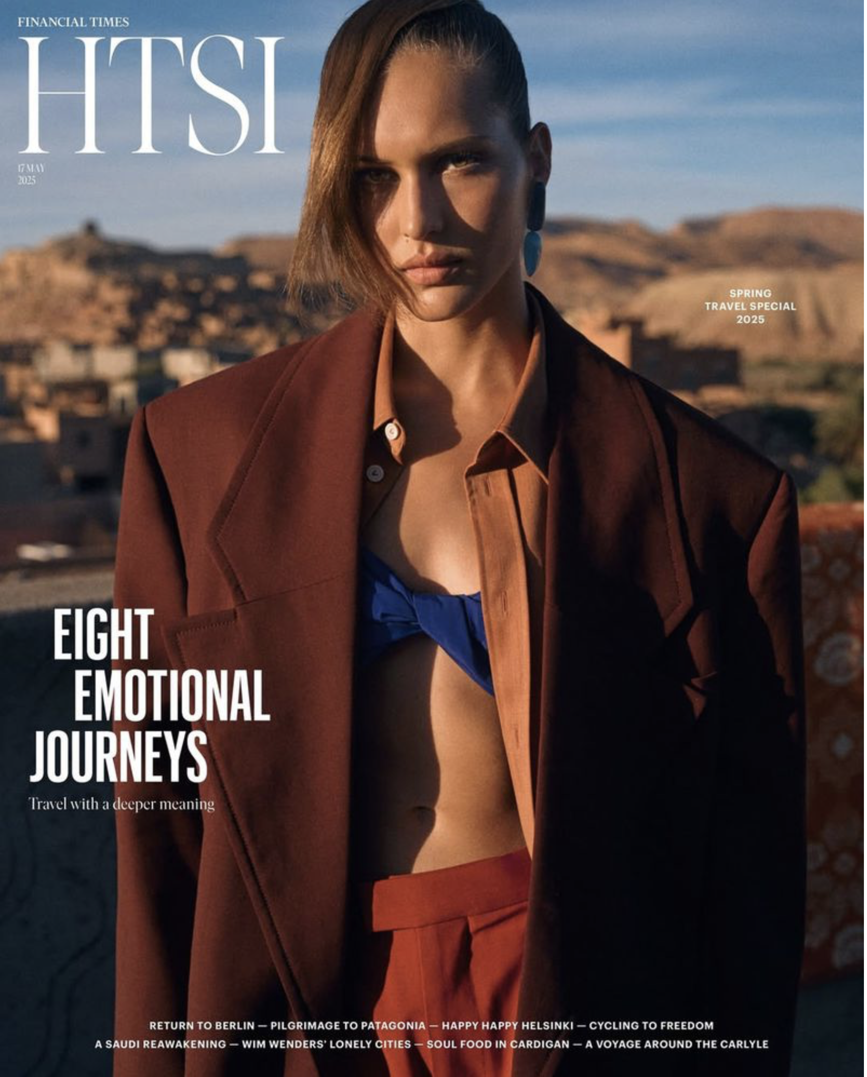 /The Spring 2025 Travel issue for HTSI Magazine [IG] heads to Morocco putting Angelina Kendall on the cover wearing rich, transitional colors from Bottega Veneta. The beautiful story is the second luxury fashion post this week, shot by Josh Olins [IG] in Morocco.