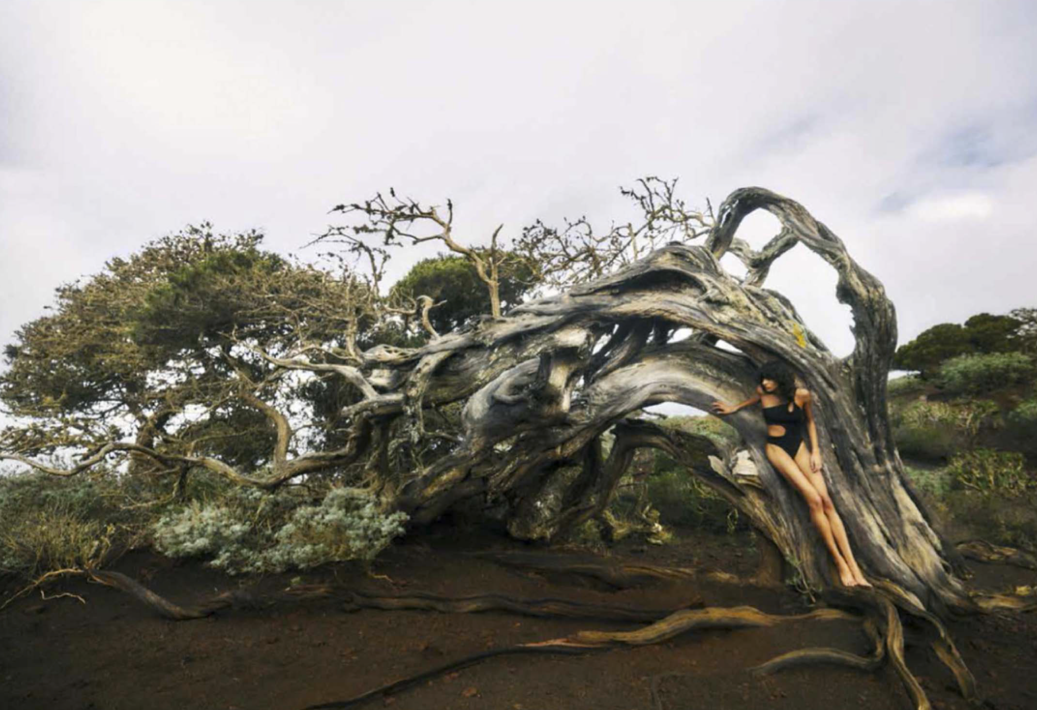 The island of El Hierro embraces and awes, like the crystal-clear, dark-bottomed water that surrounds it. Among its volcanoes and extraordinary natural sculptures, model María Khan finds peace in this swimwear story, an ode to the power of nature in the most sustainable corner of the Canary Islands.