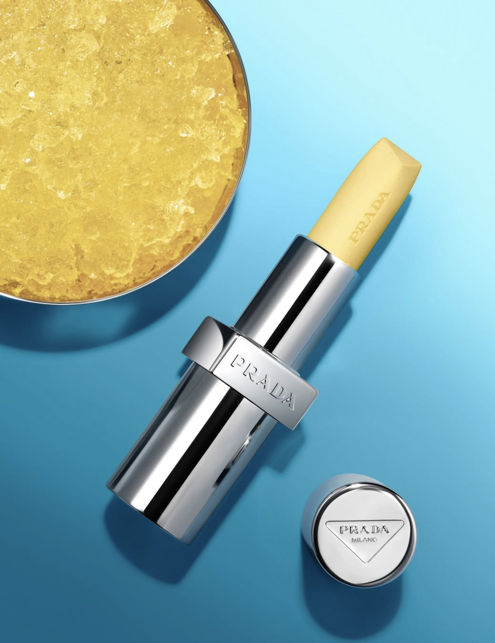From fashion to beauty, Prada Balm in Banana Yellow reveals new possibilities for this timeless pattern, which embodies the brand’s renowned harmonious balance of playfulness and sophistication – from the vibrant yellow bullet and banana-inspired scent to the golden warm luster finish it leaves upon the lips.