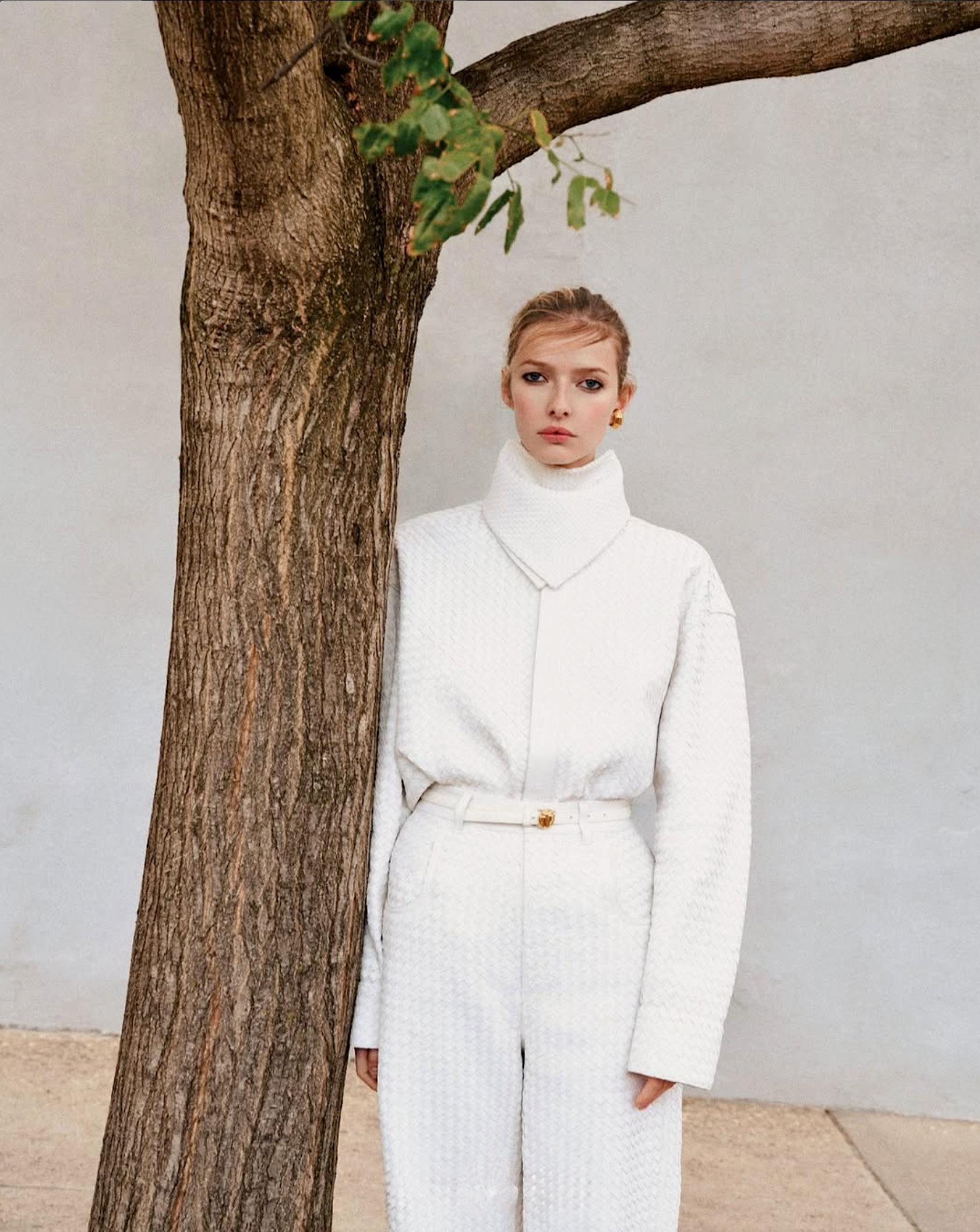 /Rising model Apple Martin appears in the March 2026 issue of American Vogue [IG], styled in at-ease luxury fashion from Balenciaga, Bottega Veneta, Calvin Klein, Dior, Jil Sander, Loewe, Prada and more. Photographer Letty Schmiterlow [IG] is in the studio, with styling by Luca Galasso./ Hair by Racine; makeup by Hannah Murray.