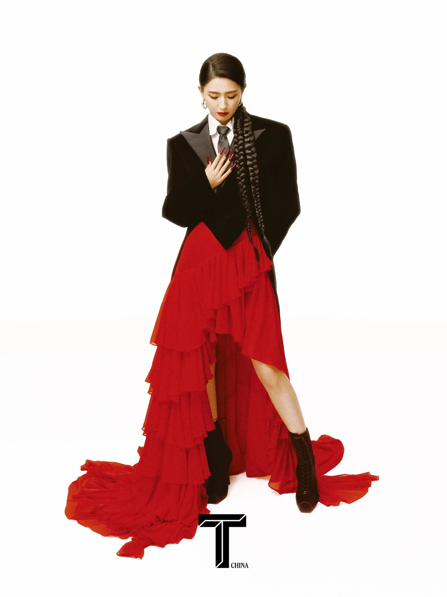 /T Magazine China [New York Times] February 2026 issue features actress Tong Liya, styled by Clara Jiang in clothes that honor her home and heritage in Xinjiang.