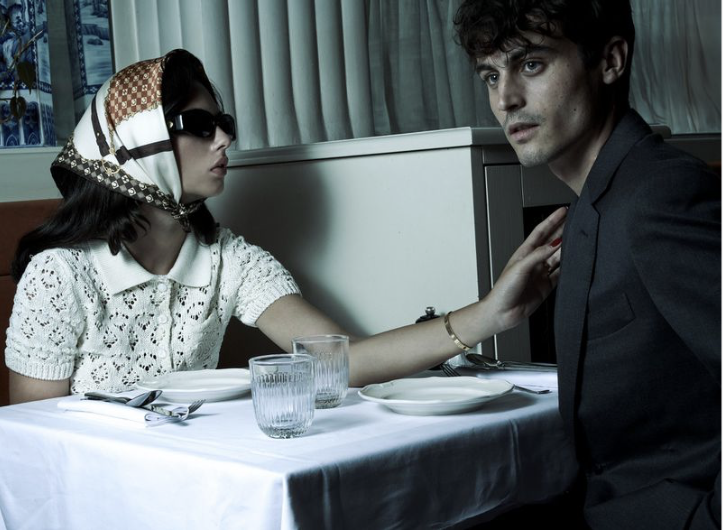 Photographer Luc Braquet [IG] creates his own cinematic fashion story, with a ‘ships’ passing in the night’ vibe between Cassel and De Saint Jean, who plays the phantom in a modern rendition of the original story.