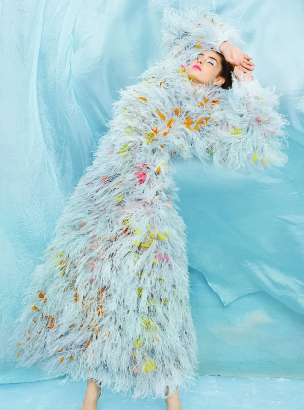 When I look at the image below — the horizontal rose-colored image of Africa Peñalver, styled by Leith Clark — my mind and emotions say “thank you” to photographer Erik Madigan Heck [IG] and to Harper’s UK.