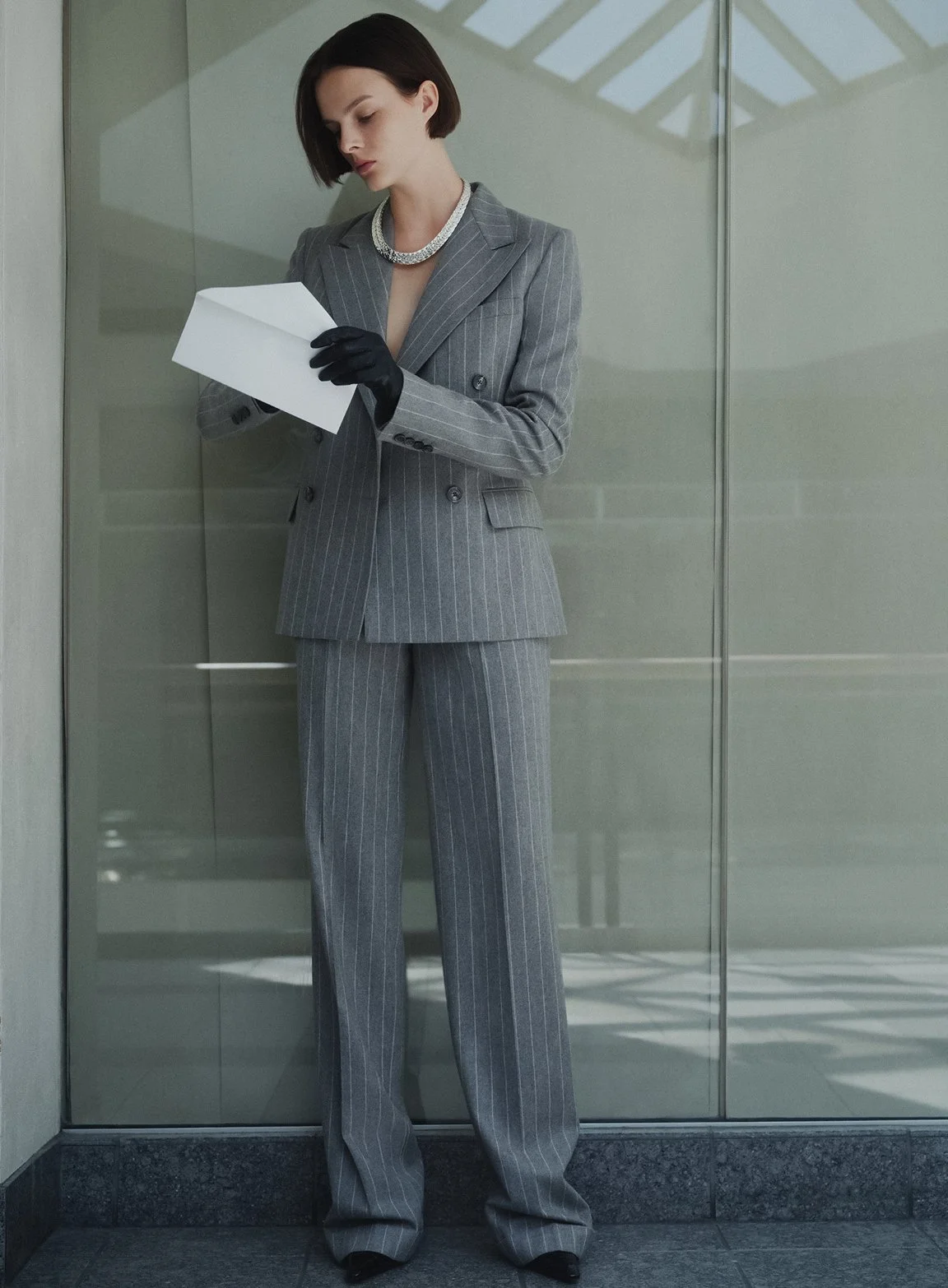 /Model Aylah Peterson is styled by Elissa Santisi in ‘Suits You’, a fashion collection of relaxed but sharp-tailoring suits for women accepting that in our post-COVID world [if true], employees who want a career path must show up at the office at least three-days a week.