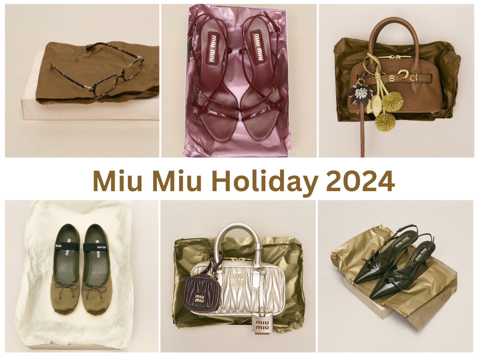 The Miu Miu Holiday 2024 [IG] campaign is inspired by antiquarian festive portrait postcards in images styled by Lotta Volkova with a focus on Miu Miu’s Arcadie bag. Edward Quarmby provided creative direction on the campaign photographed by Lengua [IG].