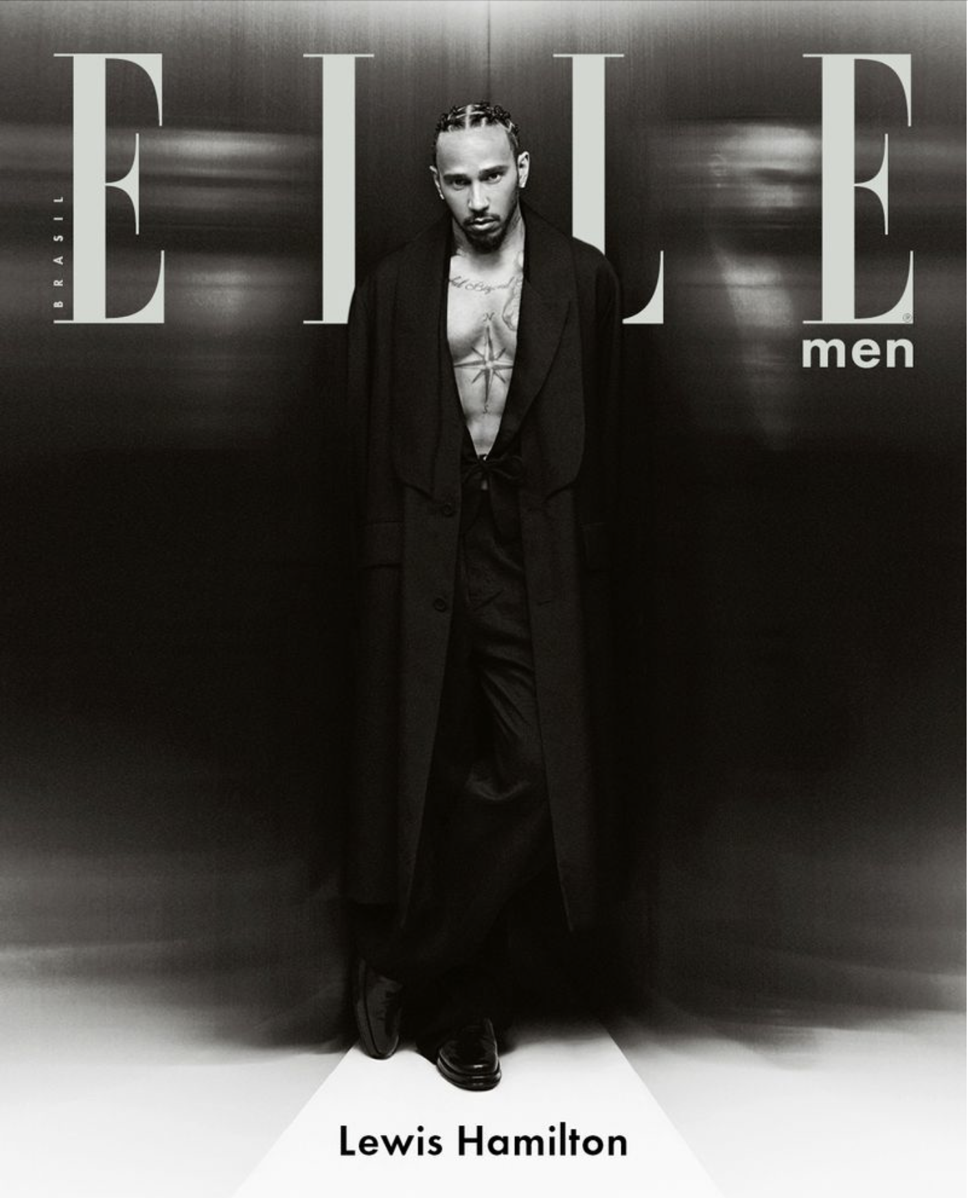 In this moment, Hamilton’s global parking space is the September 2024 pages of ELLE Brasil [IG], where he wears Dior Men and Issey Miyake in a fashion story styled by Juliana Gimenez for Rimowa luggage, executed with creative director Luciano Schmitz.