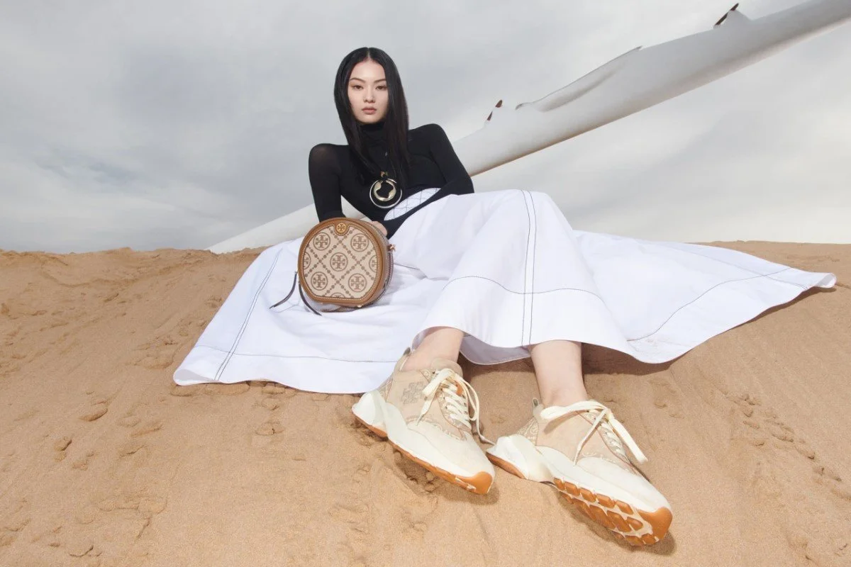 /American fashion brand Tory Burch shares her Spring Summer 2022 campaign featuring Fran Summers, He Cong, and Ugbad Abdi. Benjamin Bruno styles the campaign shot by fashion photographer Johnny Dufort. Polly Philip provides the set design with art direction by Jaime Perlman./ Hair by Anthony Turner; makeup by Lucia Pica