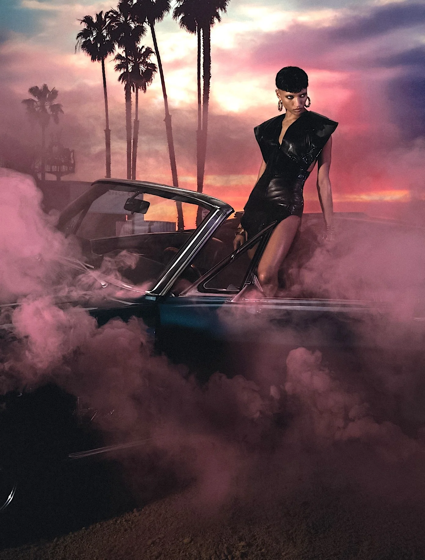 British model Georgia Palmer motors into her indie woman, fashion destiny in ‘Lost Highway’, styled by Joana Dacheville. Photographer Anthony Arquier [IG] is behind the lens for Numéro [IG] #251 February 2025./ Hair by Anastasiia Tymoshchuk; makeup by Lili Choi