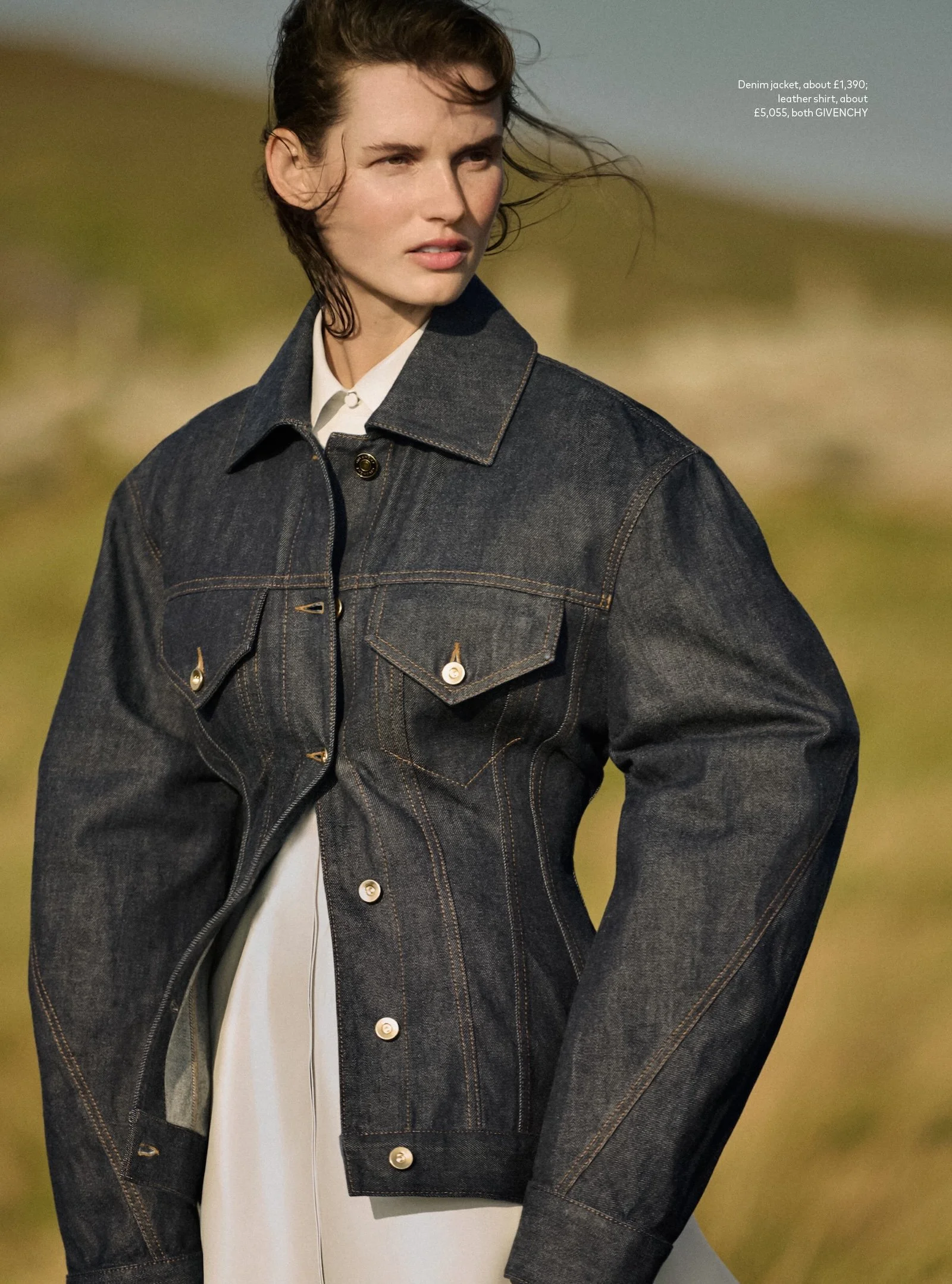 /Model Giedre Dukauskaite headlines ‘Go West’, a city slickers vision of western style fashioned by Miranda Almond using Celine by Hedi Slimane, Etro, Giambattista Valli, Givenchy, Gucci, Loro Piana, MiuMiu, Prada, Simone Rocha, Sportmax, Stella McCartney, Valentino and more.