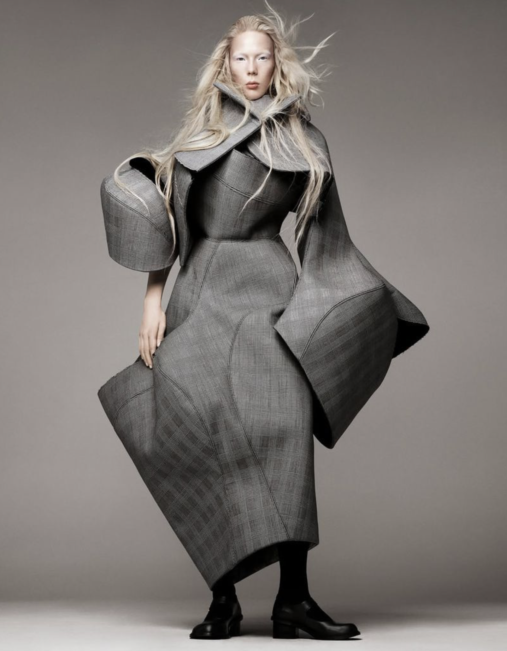 The legendary Steven Meisel [IG] shoots the often unconventional looks from Aläia, Burberry, Comme des Garçons, Hed Mayner, Junya Watanabe, MM6 Maison Margiela, Maison Mihara Yasuhiro, Marc Jacobs, Ponte, Prada, Sacai, Saint Laurent by Anthony Vaccarello, Sacai, Undercover, Yohji Yamamoto and more./ Hair by Guido Palau; makeup by Pat McGrath