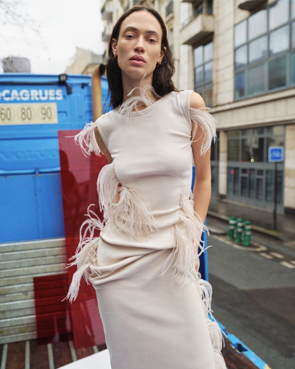 /French-American model Sophie Koealla sees Paris in the back of a truck, styled by Kyanisha Morgan in Acne Studios, Balenciaga, Coperni, Dior, Duran Lantink, Ferragamo, Fendi, Gucci, Helmut Lang, Loewe and more.