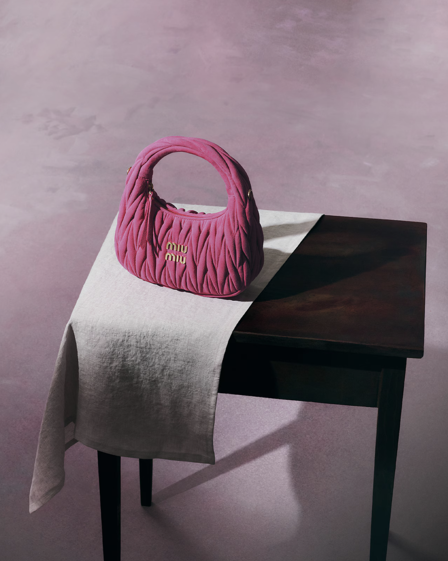 The new Miu Miu [IG] 2025 Leathergood Campaign, starring Gigi Hadid in its initial release, immortalizes both the brand’s emblematic matelassé now presented in soft suede across the Wander and Arcadie handbags and the women who hold it in their hands. The color hues are delicious: chocolate, mustard, pistachio and fuchsia.
