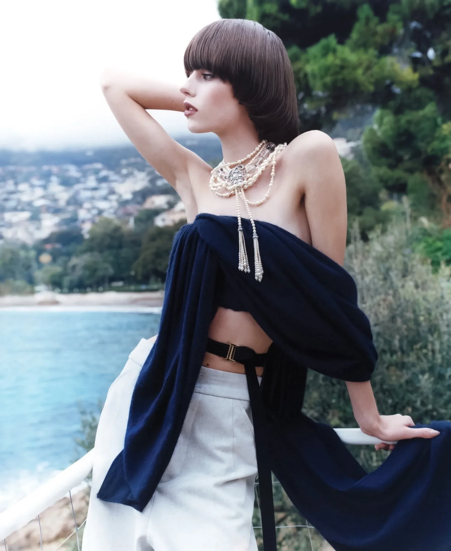 /Louise Ford styled the fashion shoot in which draped garments from Chanel, Isabel Marant, Prada, YSL and more send the WSJ Magazine message that fashionable, fluid folds in the Mediterranean haven’t looked this good since 750 BC./ Hair by Soichi Inagaki; makeup by Thierry Do Nascimento