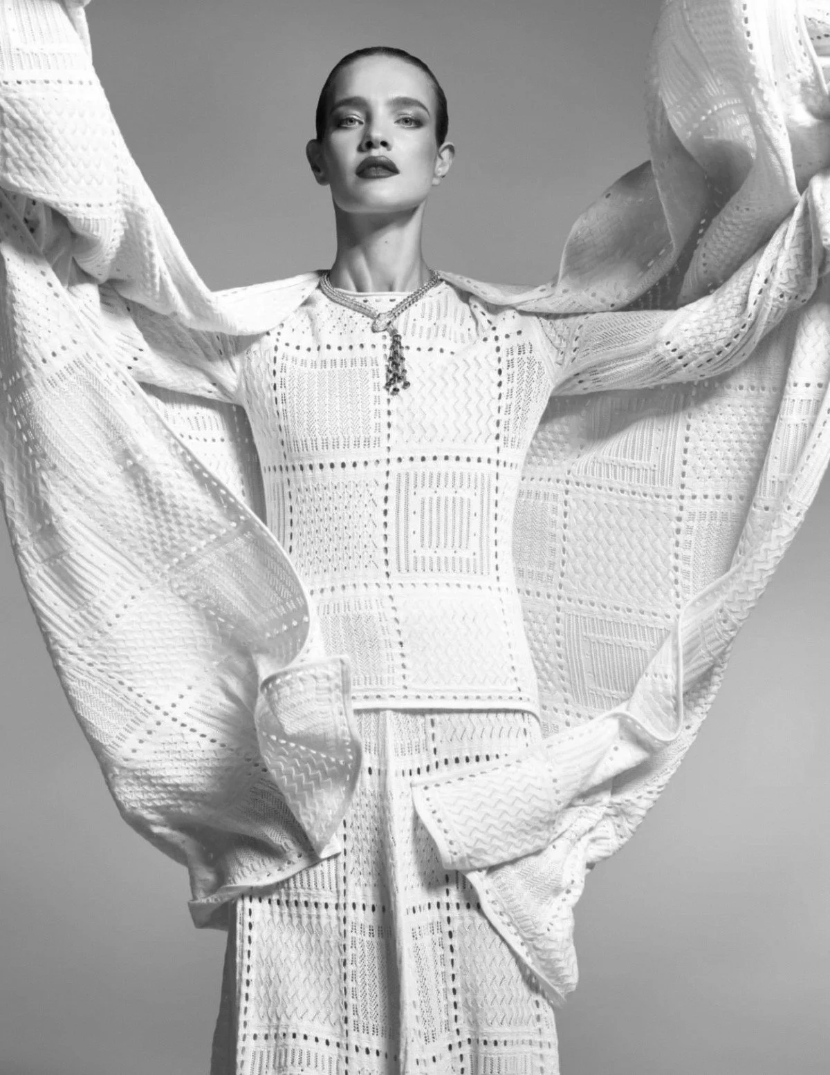 /Supermodel Natalia Vodianova is styled by Beatriz Machado in Swan-Lake inspired, modern whites elegance. Photographer Nicolas Valois [IG] captures Natalia for Harper’s Bazaar España January 2022. Harper’s calls Vodianova — the supermodel, philanthropist, UN ambassador and Guerlain muse — “one of the industry's greatest forces of change.”