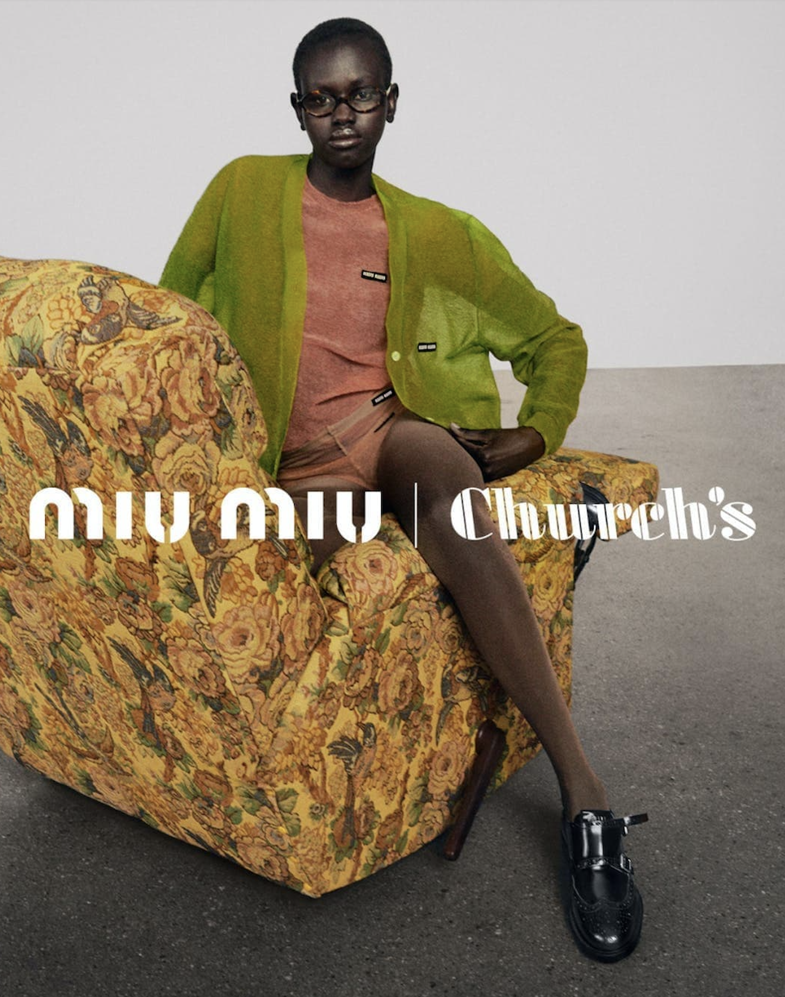 /The new Fall/Winter 2023 Church’s X Miu Miu collaboration, breaking tomorrow August 29 online at MiuMiu and in MiuMiu stores from September 6, projects perfect execution and attention to detail.
