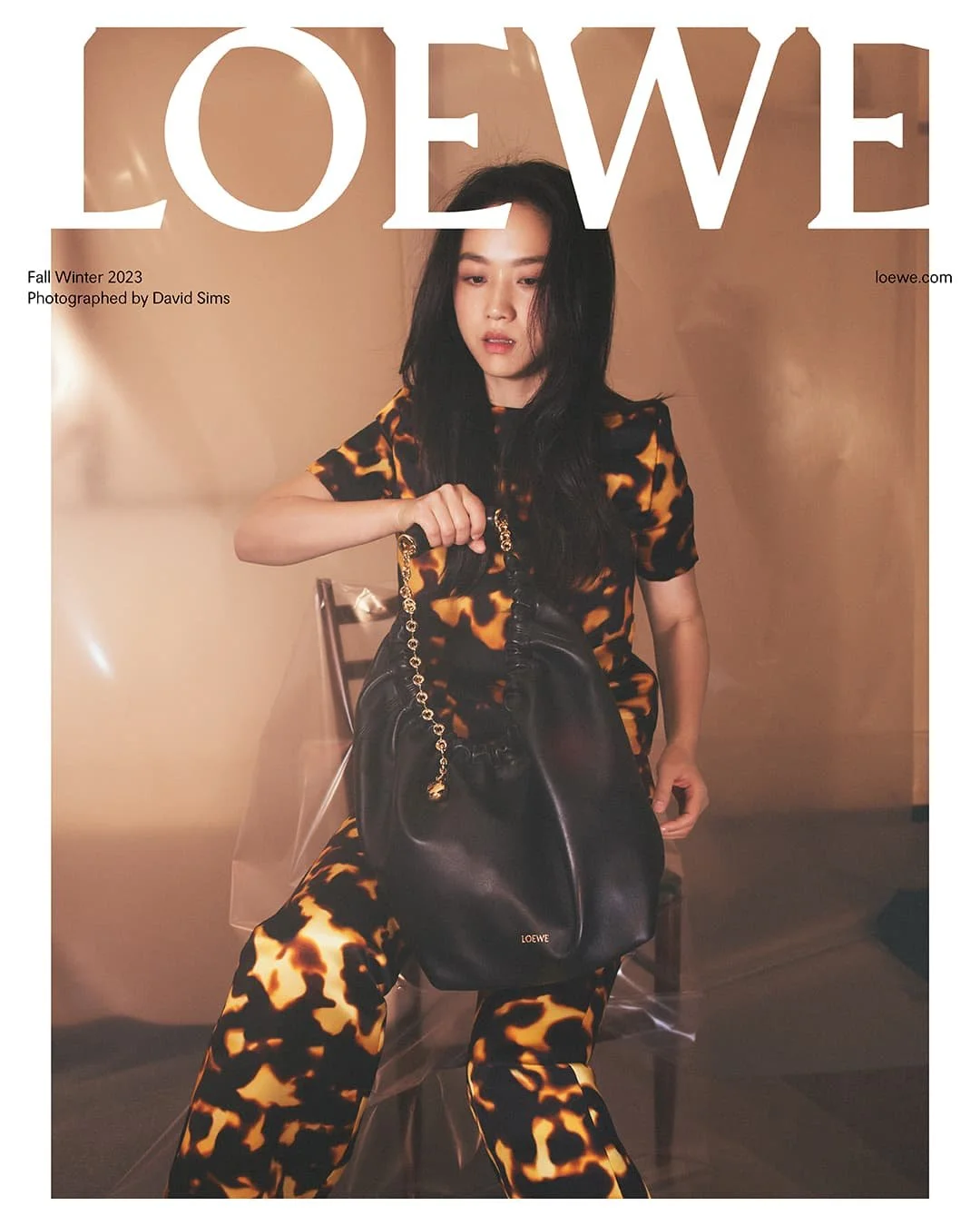 Talents Tang Wei and Taylor Russell are styled by Benjamin Bruno in Jonathan Anderson’s Fall 2023 Loewe Campaign, lensed by David Sims [IG]./ Makeup by Wong Chi Yee and Lucia Pieroni; hair by Lo Chu Sum & Duffy