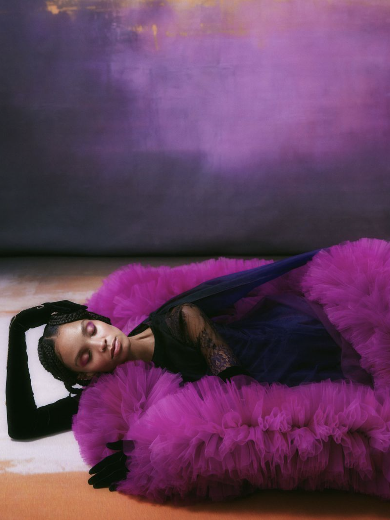 She poses [or is placed] against a backdrop straight out of a Rothko painting. Not the one I had in mind, but this is visually fantastic to Anne and an inspiring juxtaposition of cerebral and cosmic rituals with modernism.