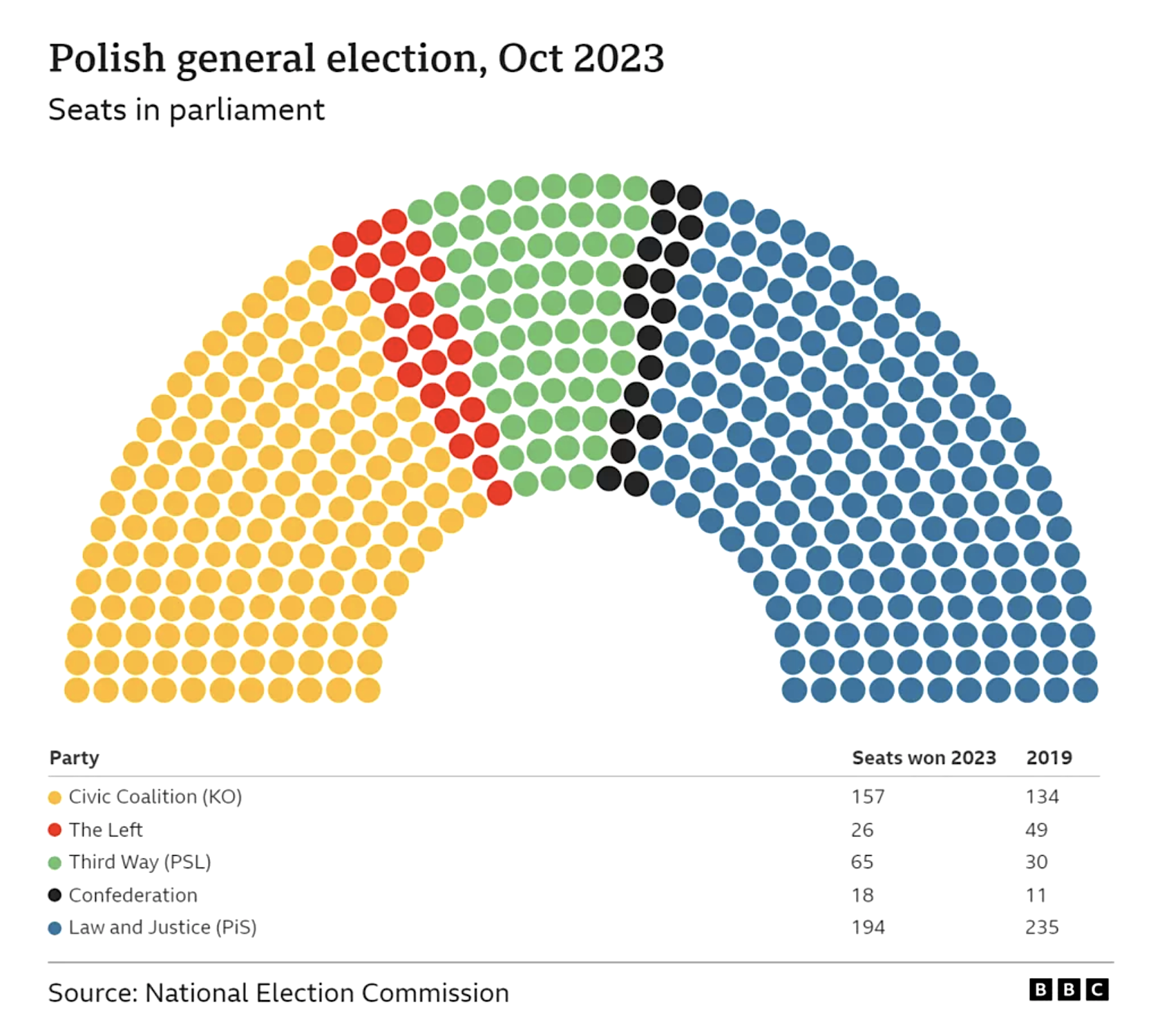 All reports are that the EU headquarters in Brussels is having a sigh of relief over the Polish election results. Change way from right-wing, authoritarian policies is on the horizon.